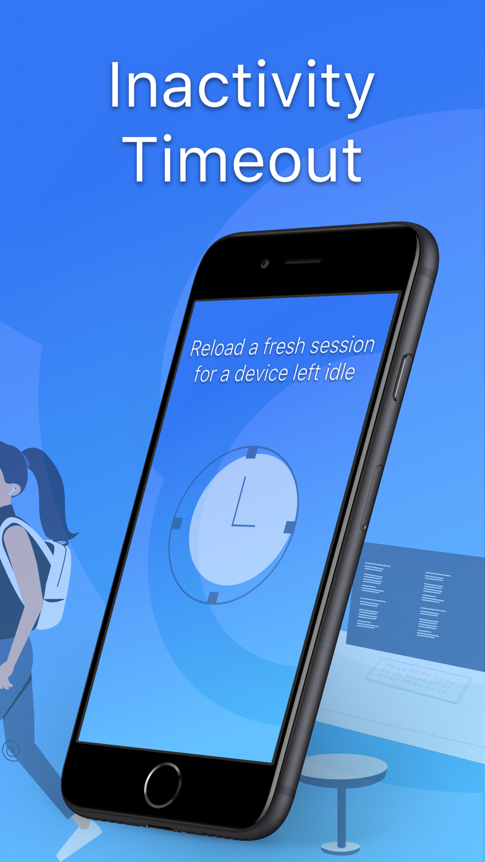 • Inactivity Timeout: Monitor user activity and reload homepage, dim the screen, and/or load a blank screen if no user activity has taken place for a selected duration. Optionally, you can choose to clear the browser cache on timeout to ensure previous user session data is deleted.
