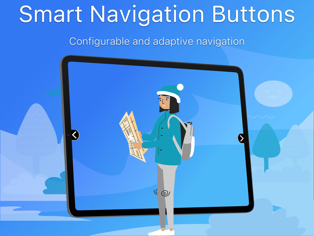 • Smart Navigation Buttons: WebFrame now supports navigation buttons that will automatically show and hide depending on the ability to navigate backward and forward. They can also be configured to dynamically slide offscreen as the page scrolls to minimize their visual impact. Finally, they can be repositioned vertically on the screen to prevent obscuring underlying page content.