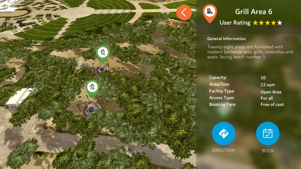 • Book chalets, grill areas, sports facilities, and event spaces.