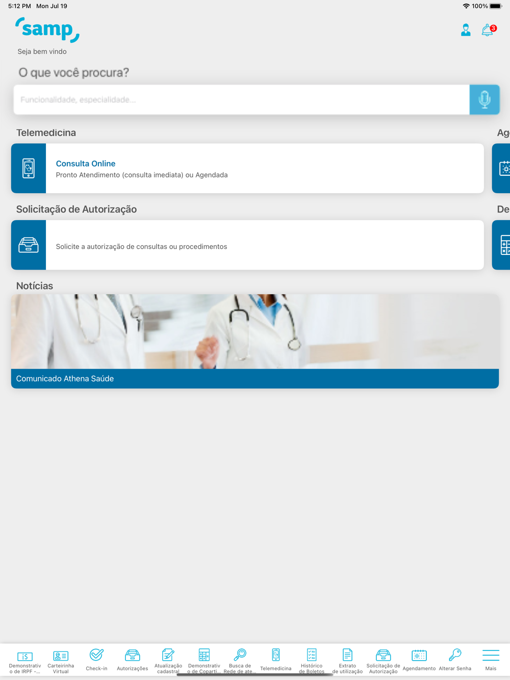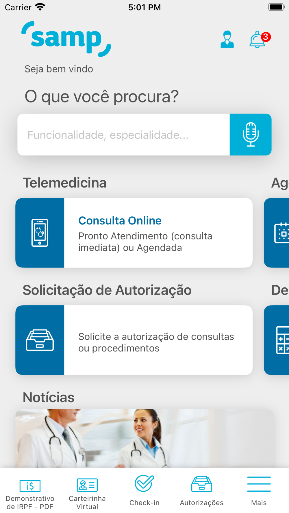 Com o app da Samp você encontra as especialidades médicas e clínicas que precisa, além de laboratórios credenciados. E pode ainda marcar consultas presenciais ou por telemedicina. Outra vantagem é o acesso facilitado às autorizações. Tudo para tornar o seu acesso à saúde de qualidade na palma da sua mão. A nova versão traz ainda um visual moderno e uma interface intuitiva, além de uma área para notícias. É a Samp empenhada em trazer tecnologia aplicada ao seu bem-estar.