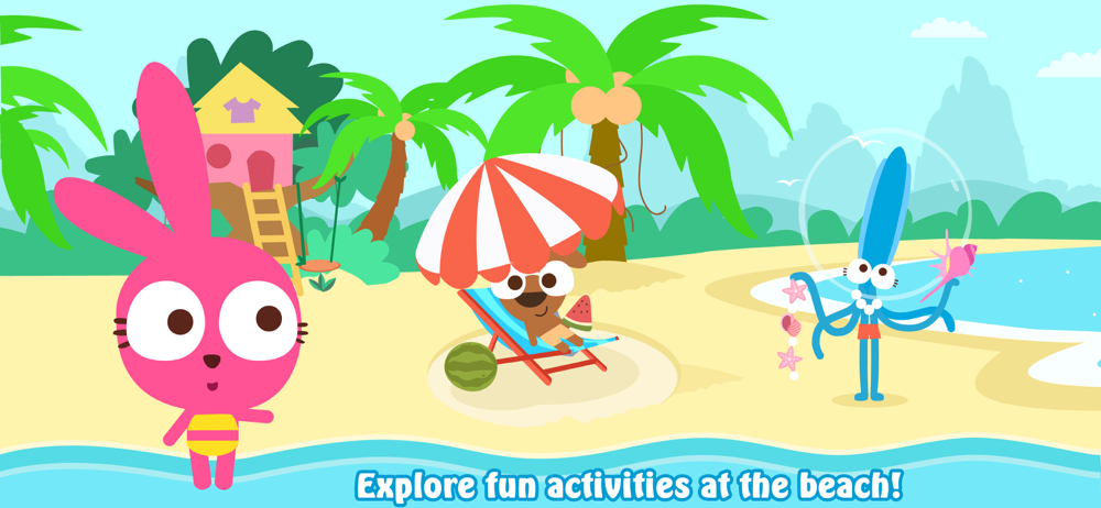Purple Pink the Bunny and Papo friends are on a vacation. The food are delicious! Not to mention those fun activities! Let’s join their beach party!