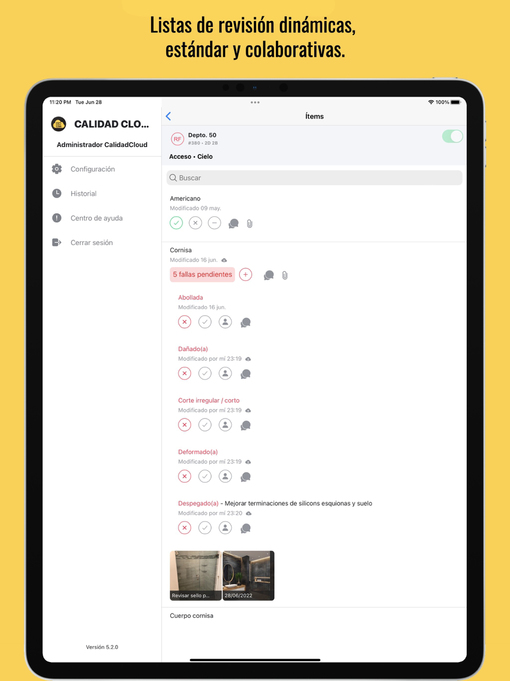 Módulo creado para la recepción de viviendas, para revisiones internas y externas, desde R0, R1 y finalmente RF, logrando rapidez en información desde obra a oficinas centrales. Además permite la integración y trazabilidad completa desde el módulo de Calidad.