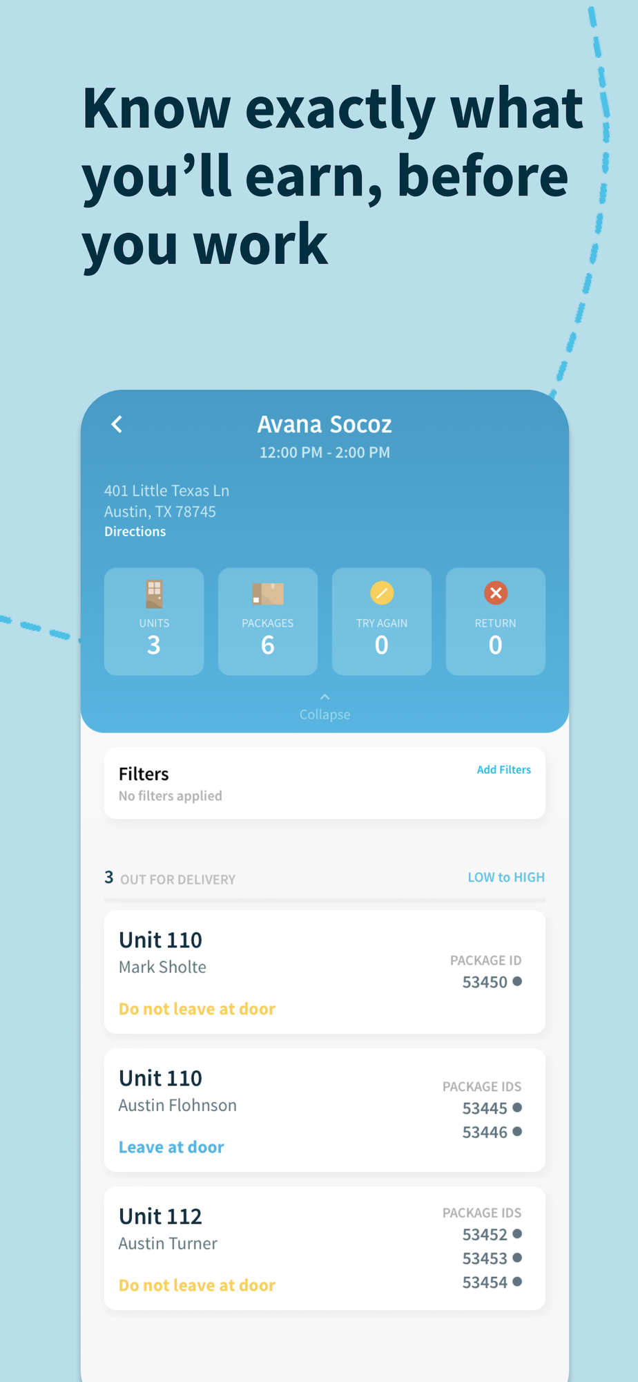 Delivery Partner shifts are typically only 2-3 stops at local apartment communities within your local area, so you won’t need to spend an entire shift driving.
