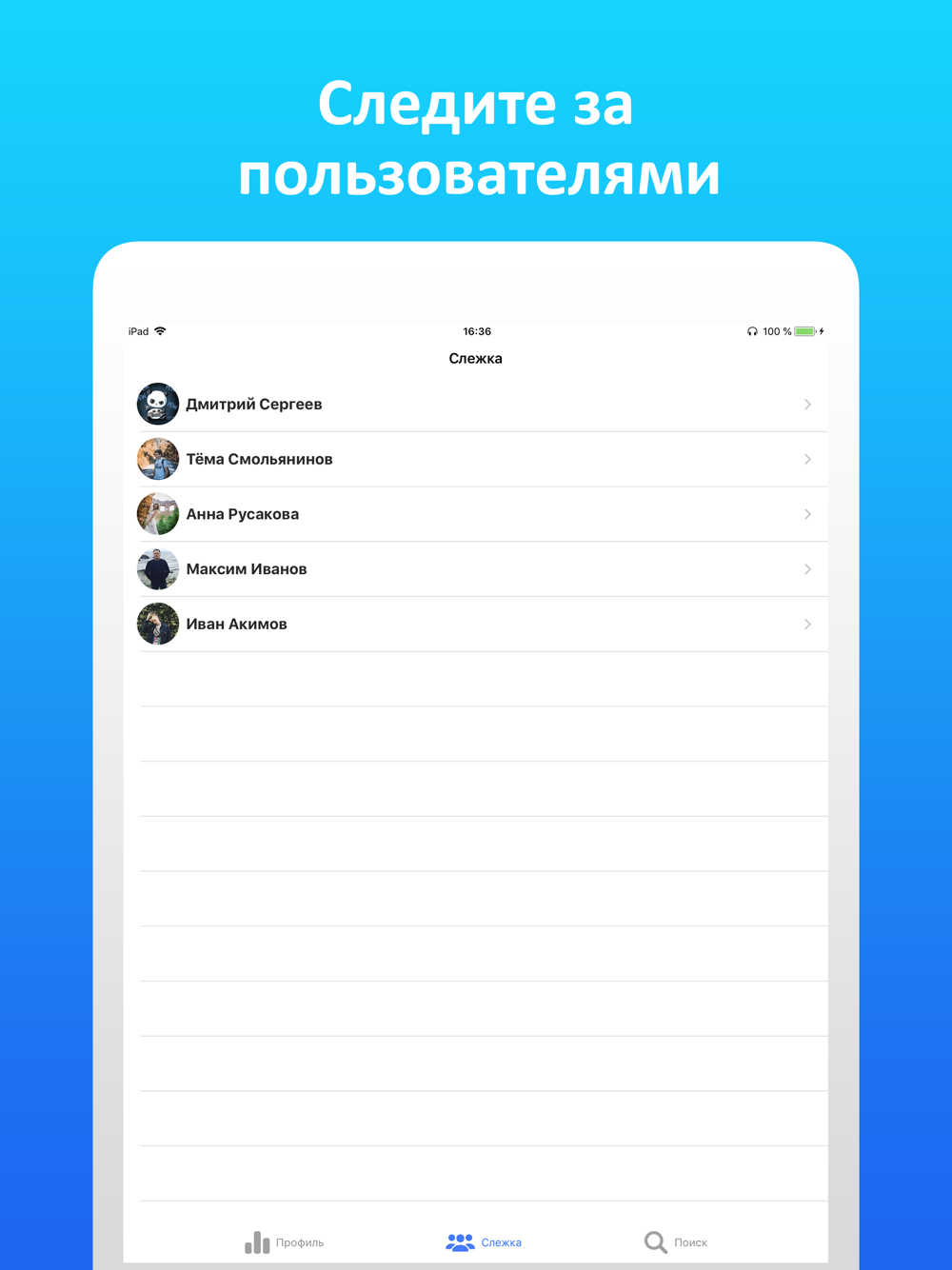 1. Добавьте любого человека в раздел "Слежки" нажатием кнопки "Следить".