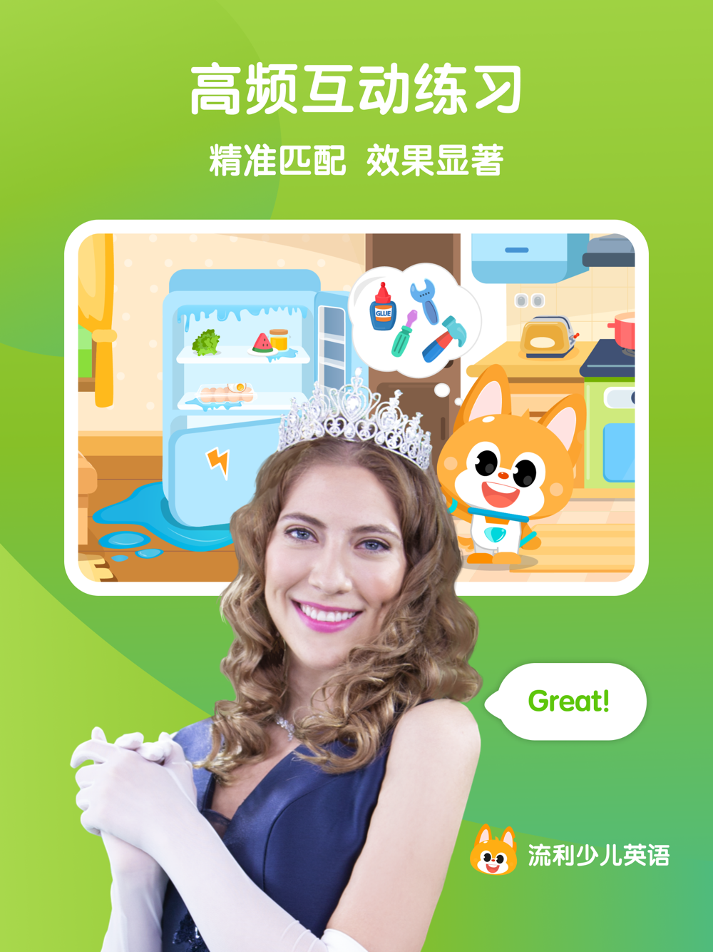 高品质视频互动课:240 段制作精良的原创英文动画,160 节生动的北美外教课堂,80 个绘本儿歌,高频日常对话,全面提升孩子的语感、审美、韵律感和肢体表达能力。
