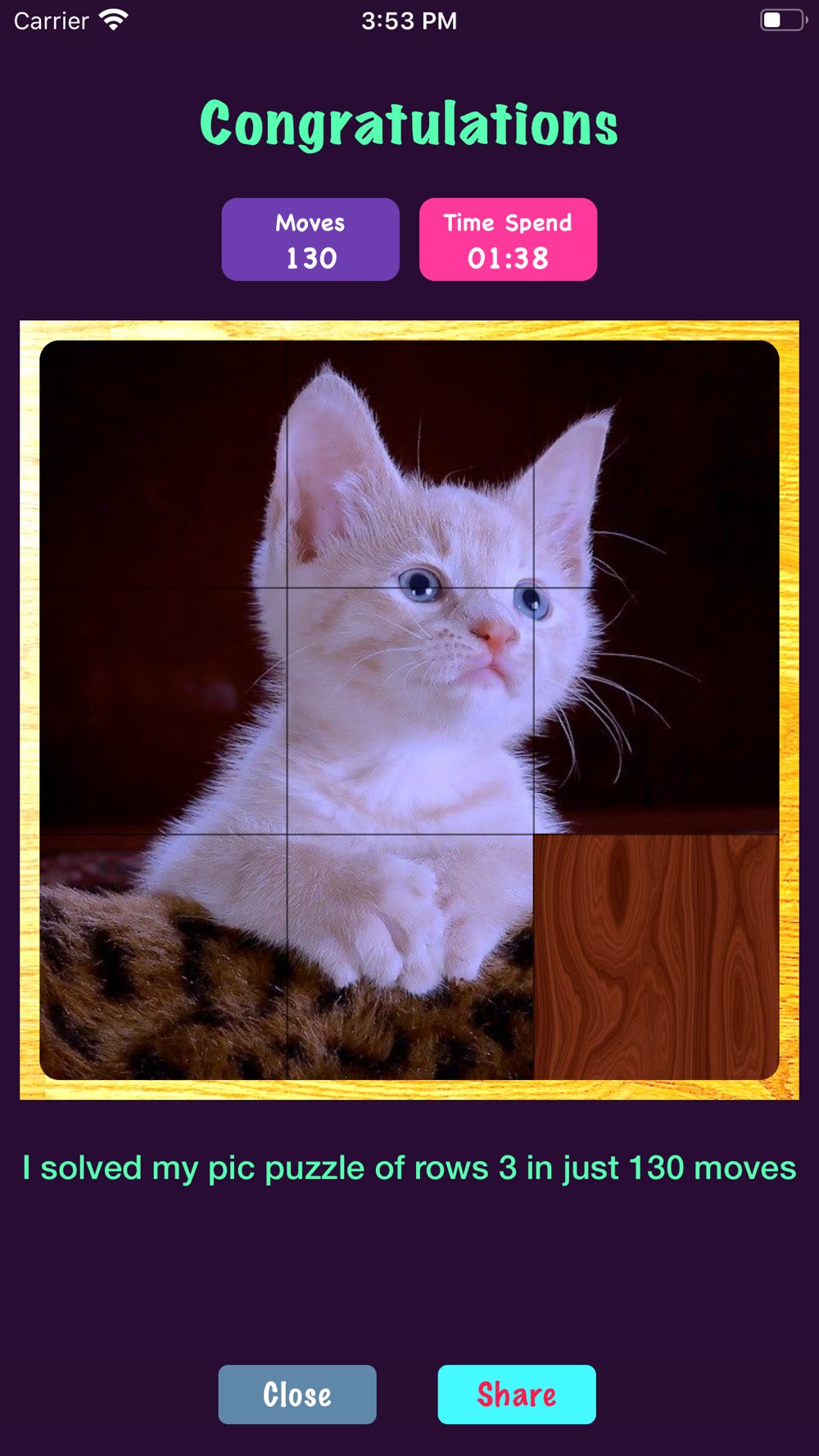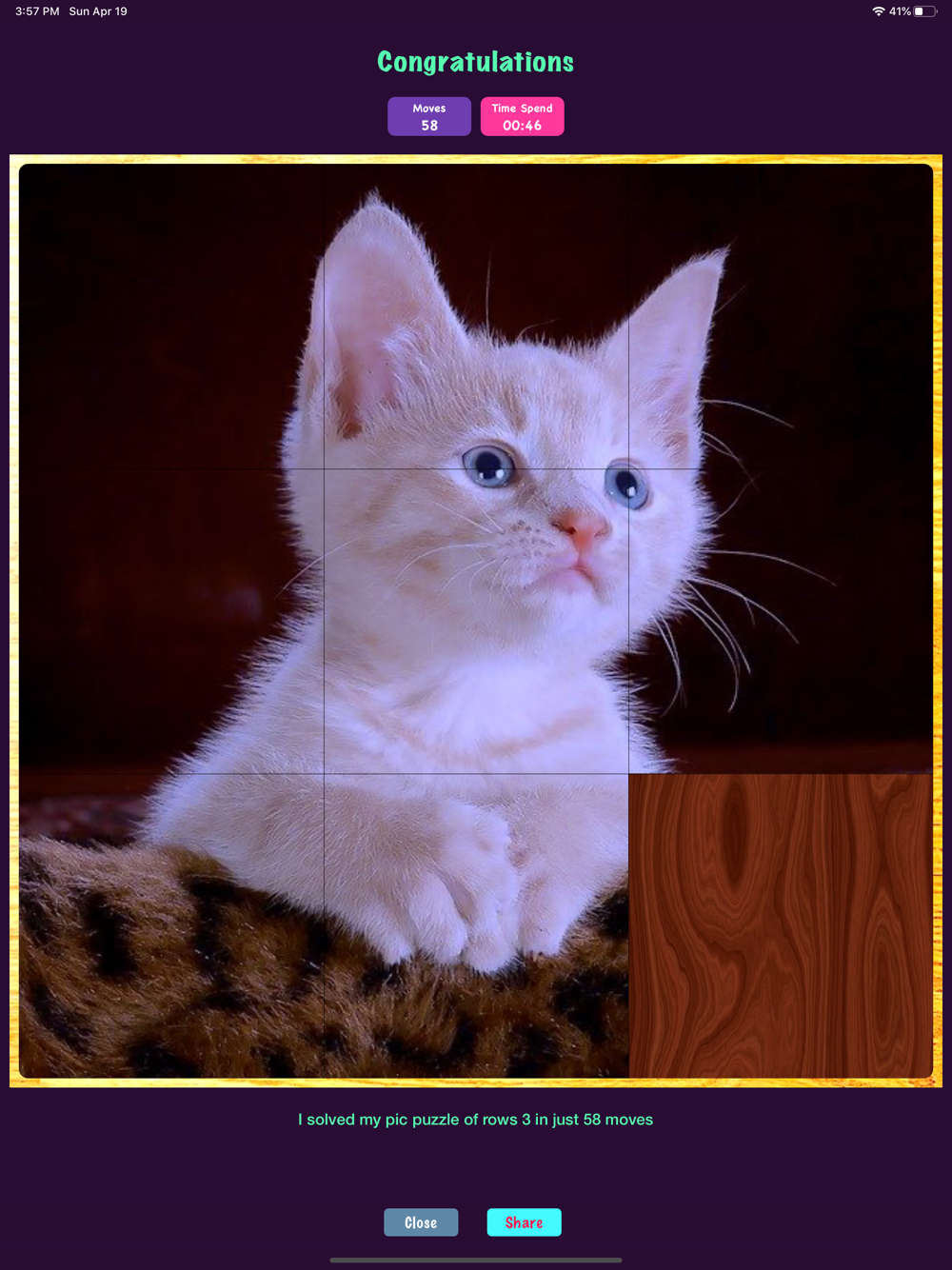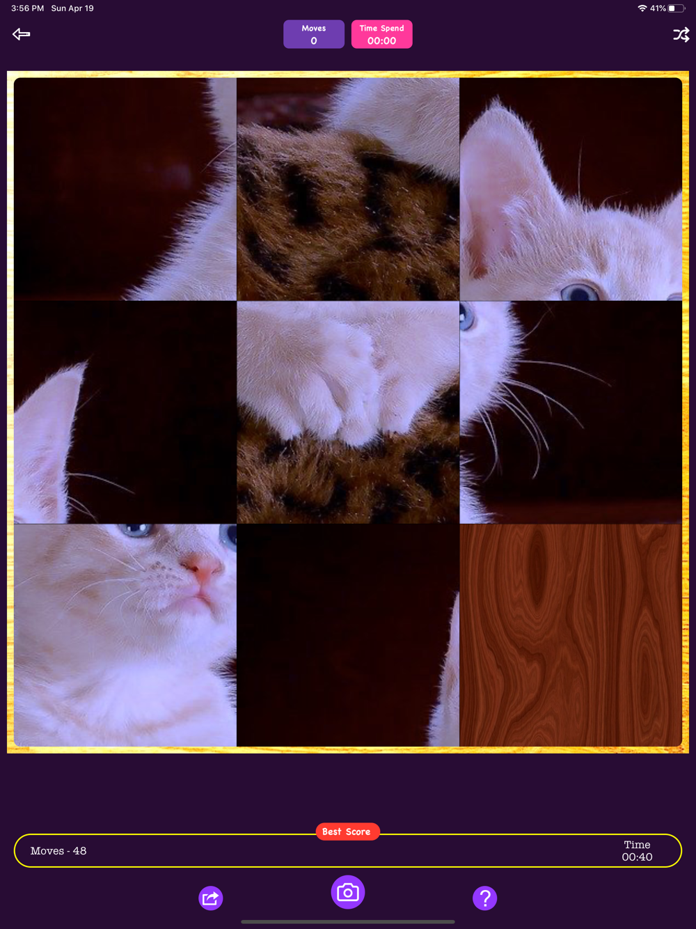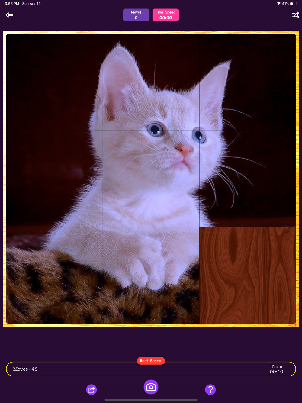 "Its so much fun because u get to take a picture and make it n to a puzzle and u can take an image you like and make as a puzzle.hard but fun!!!!!!"
