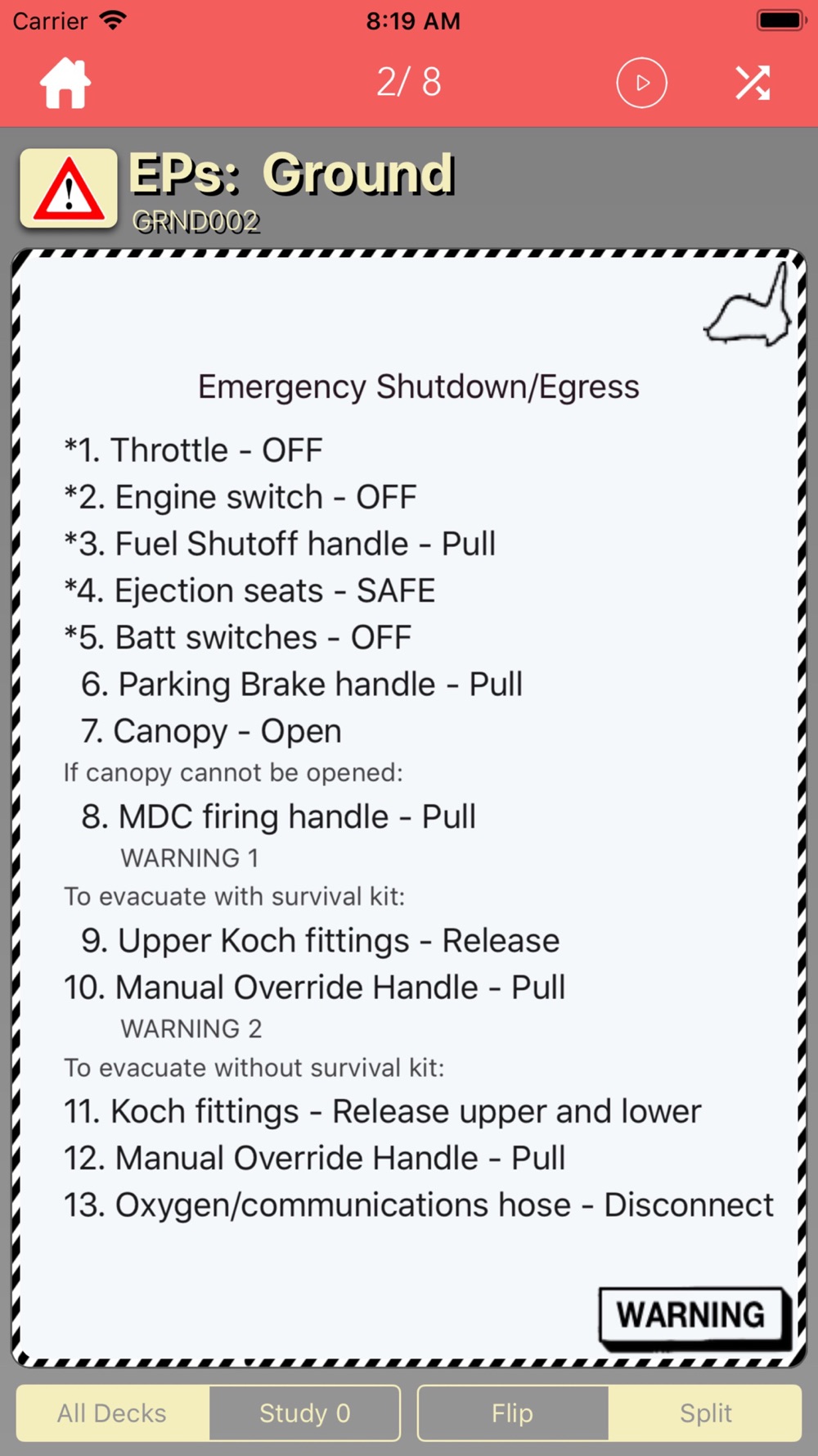 Have a few minutes to get in a quick study session but don’t have your flashcards with you? Not any more! With this mobile education application, you’ll be able to study or refresh your knowledge anytime you have your mobile device with you. This elegantly simple yet dynamically powerful application dives directly into the aircraft’s emergency procedures and operational limits. Each flashcard contains several ways from which you can study or check your knowledge recall abilities. Card features include: