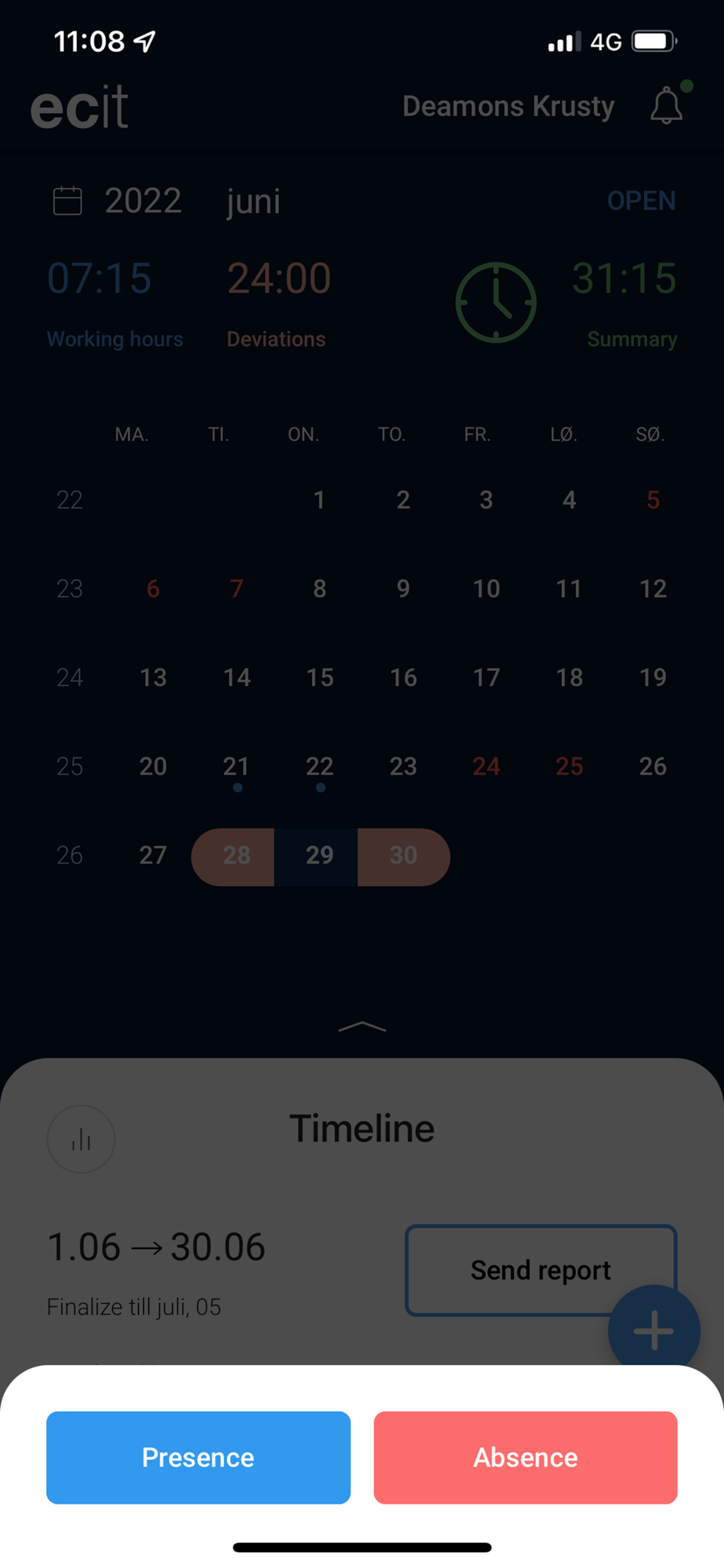 Manage your time reporting on-the-go, when and where it suits you. ECIT Employee is a free business app for your mobile device. The app enables absence reporting with simple registration of sick leave, vacation and other event types.