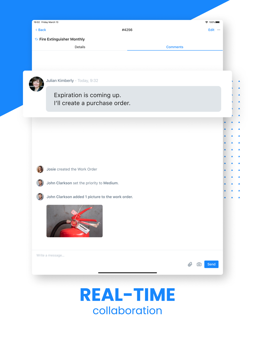 2. Message directly on work orders to keep your communication organized