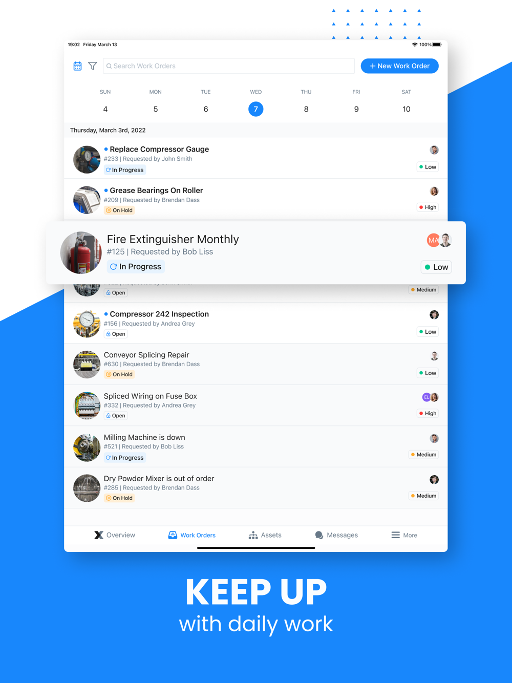 Perfect for teams looking to boost communication and get instant mobile/desktop status updates between technicians, maintenance workers, and managers.