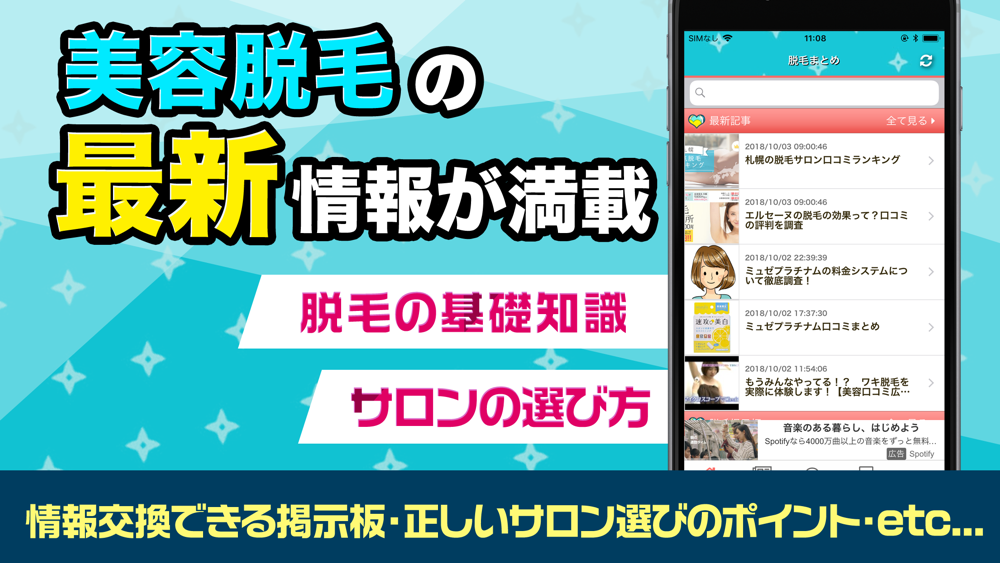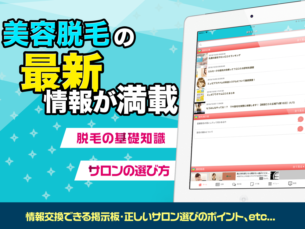 脱毛の基礎知識、初心者向けお役立ち情報、サロン選びのポイントまでこのアプリ1つで全て網羅!