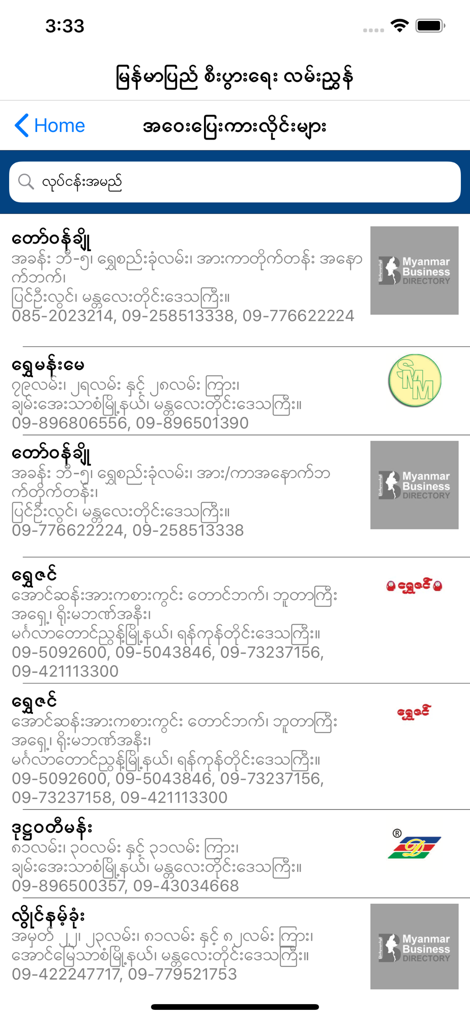 The Myanmar Business Directory is a comprehensive listing of 239,0000 businesses and