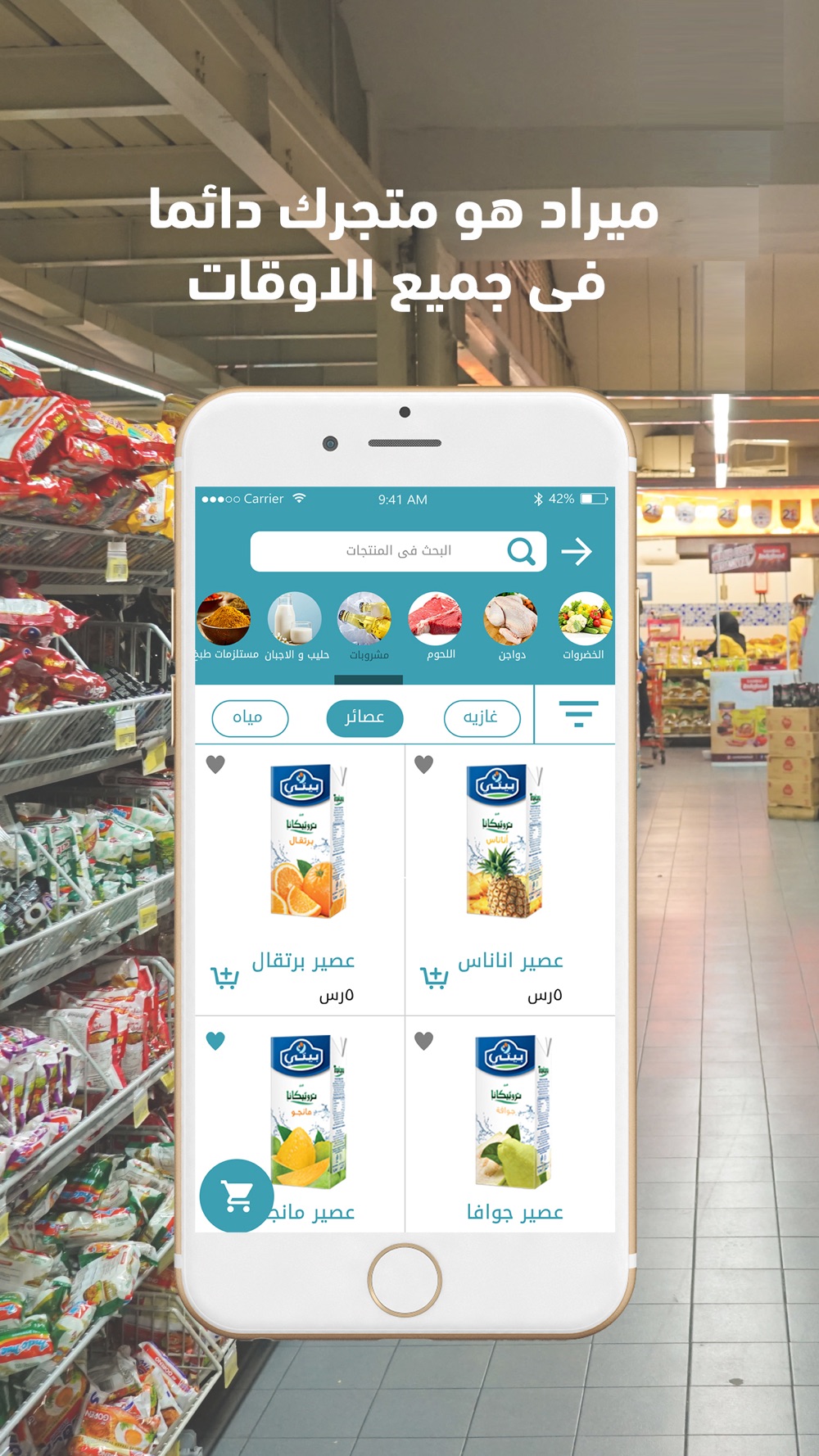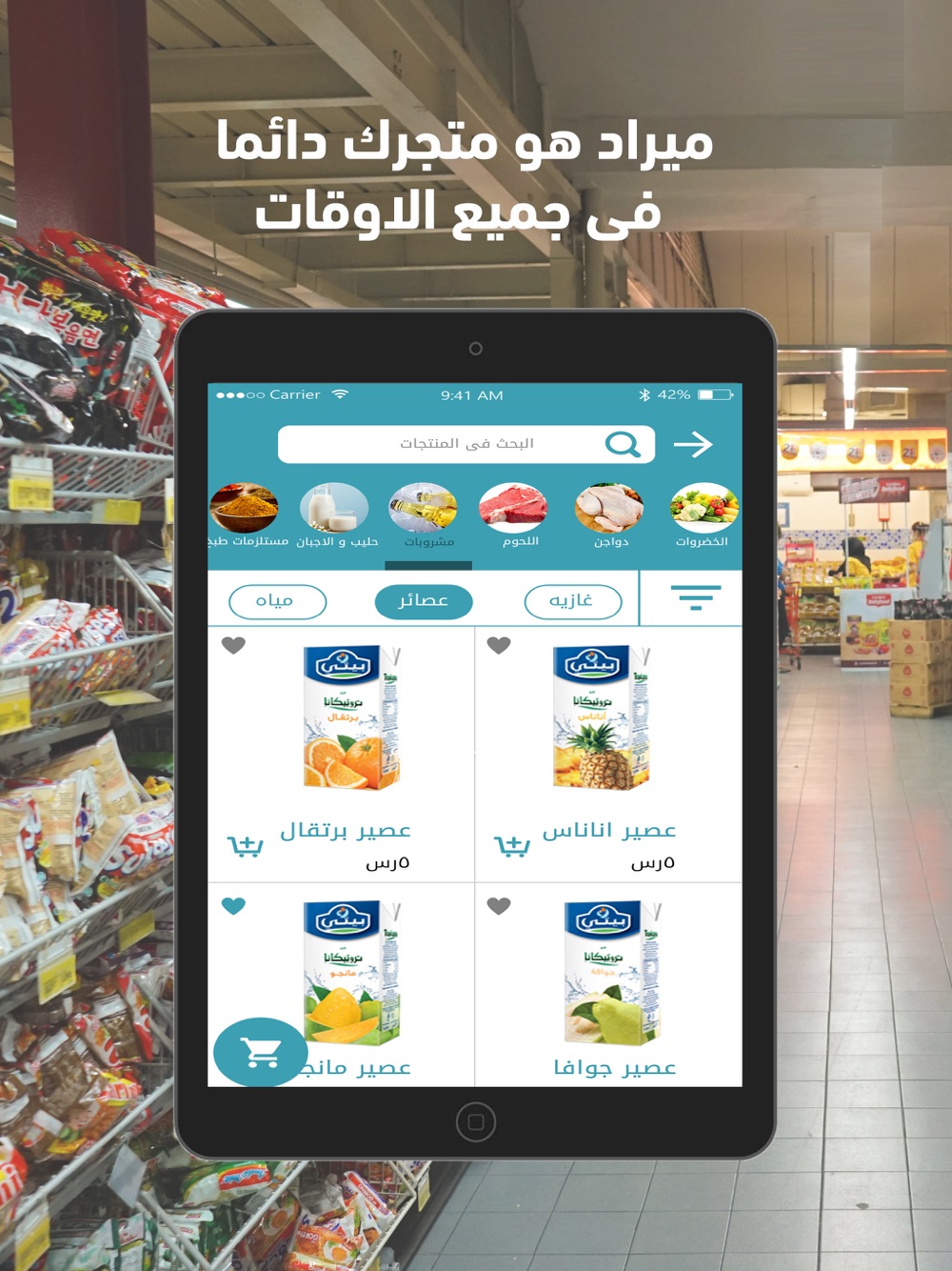 تطبيق ميراد يقدم مجموعة متنوعة ومتميزة من المنتجات ( لحوم - خضروات - ألبان - دواجن - منتجات حمية ) كما انة يقدم كافة مستلزمات المطبخ ومنتجات العنايه الشخصية فيمكنك التسوق من خلاله بكل سهولة والحصول علي المنتجات بأفضل الاسعار.