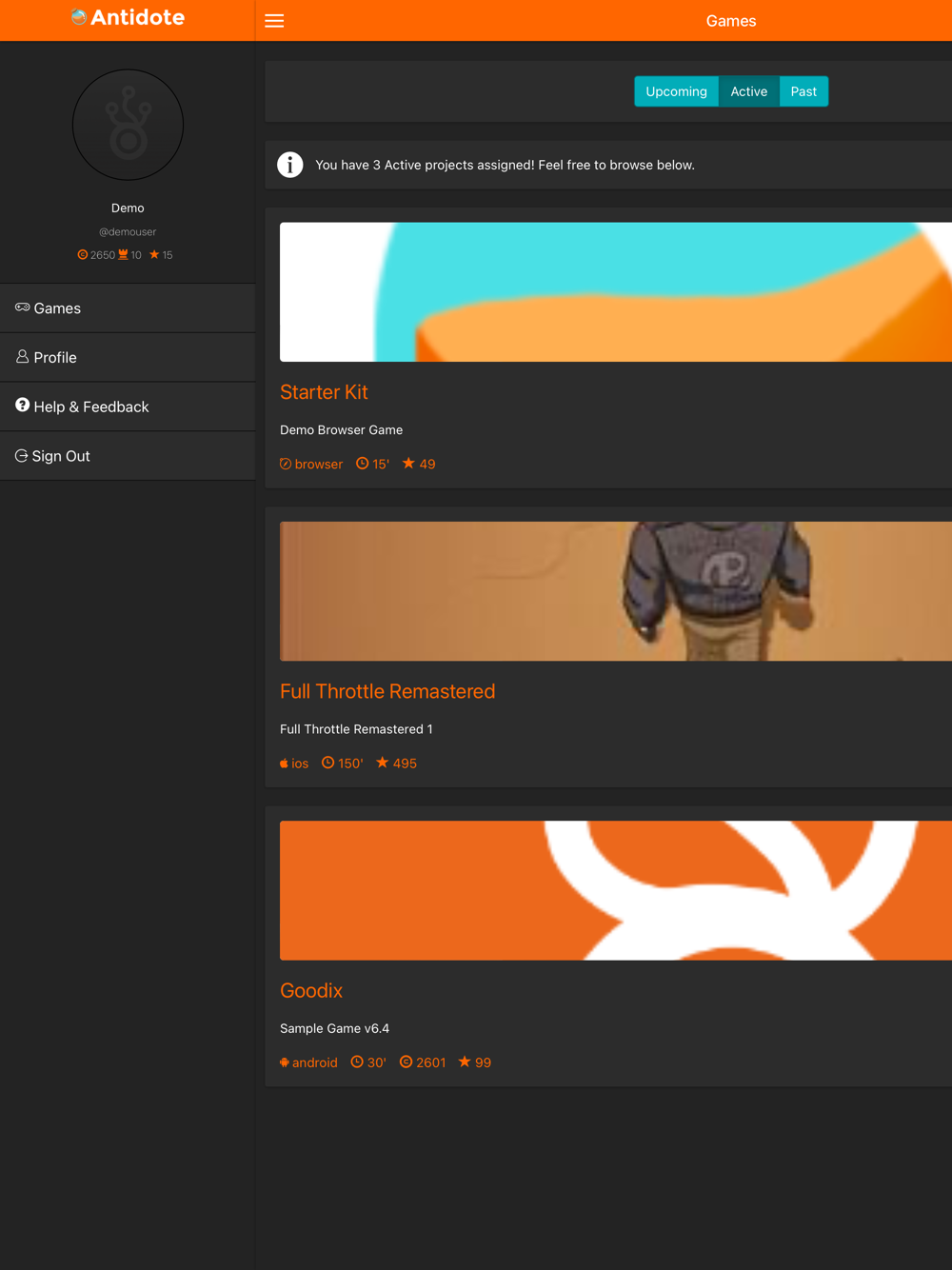 Test exclusive new games from home and earn rewards using Antidote! From 7 to 77 years old, we provide access to games of all kinds to everyone.