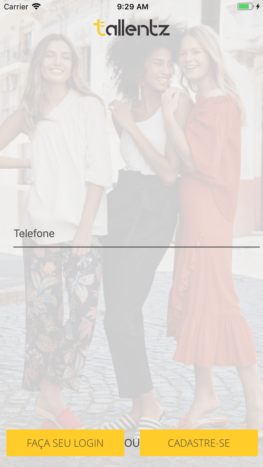 Você ainda não tem Tallentz, você pode se cadastrar rapidinho pelo aplicativo! É fácil!
