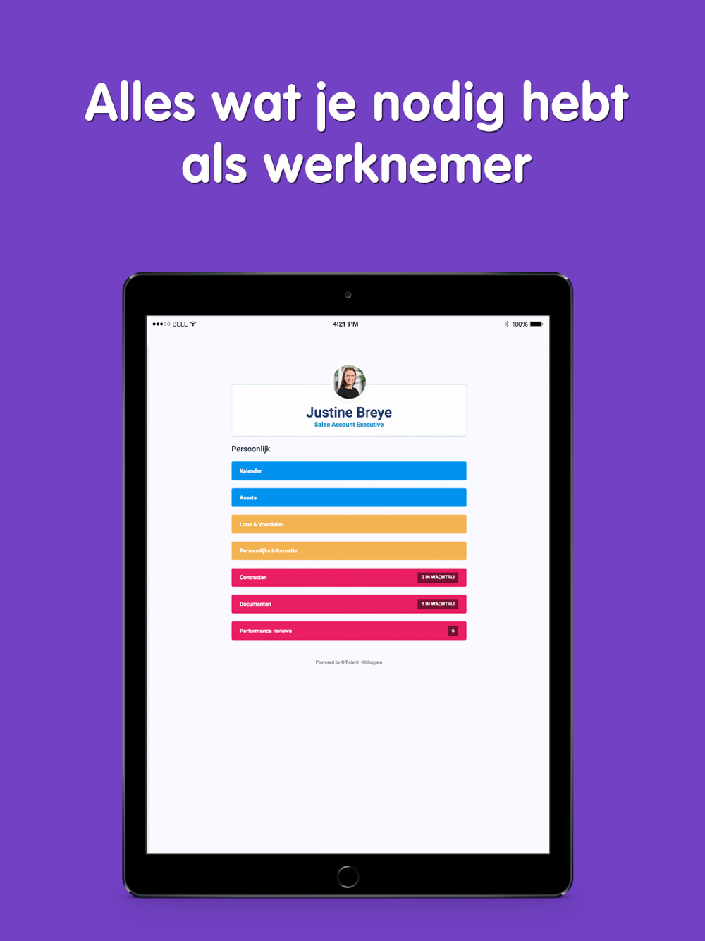 OPGELET! De applicatie kan enkel gebruikt worden als jouw onderneming gebruik maakt van het Officient HR platform en de self-service geactiveerd heeft voor alle medewerkers.