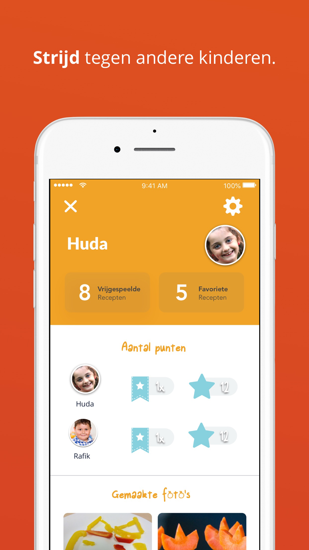 In de app leer je kennis maken met gezonde voeding, kookskills door middel van opdrachten en hoe je eenvoudig de lekkerste gezonde recepten maakt. Verdien zoveel mogelijk punten en strijd tegen jouw broertjes en zusjes of klasgenoten binnen een account.
