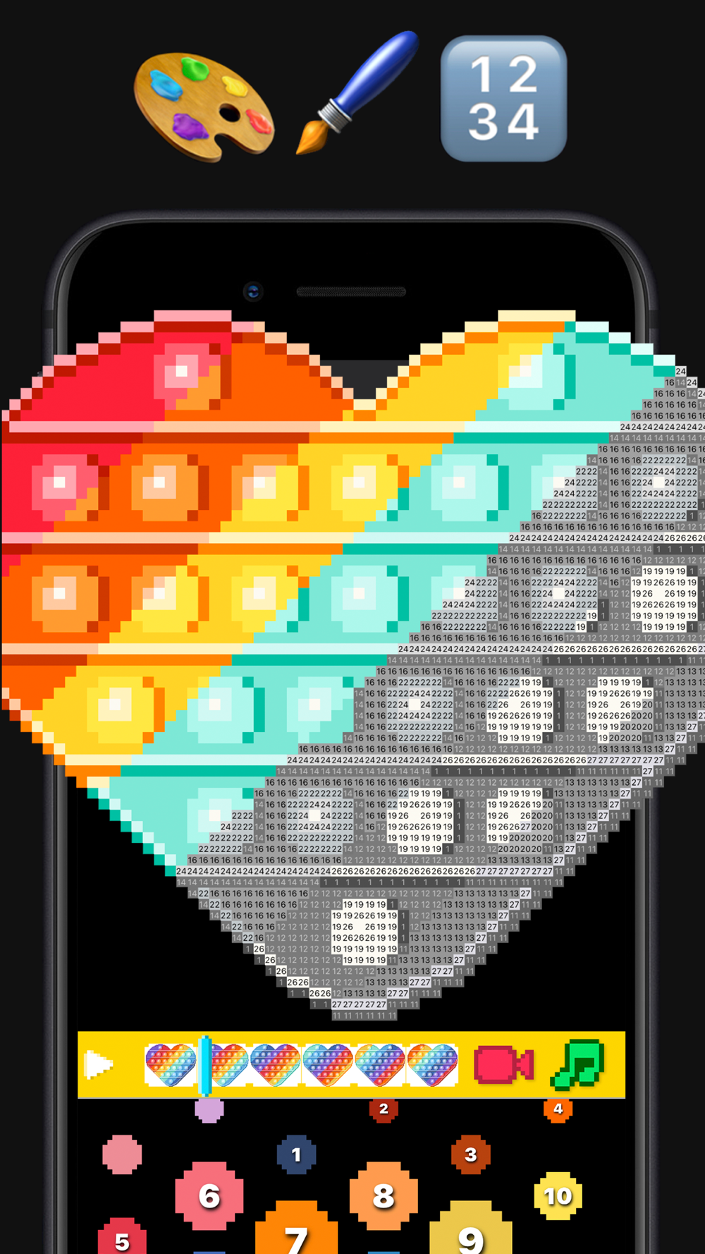 XD - is a mini cartoons, animated pixel stories that you can color. Give your heroes the character, style and uniqueness with a color palette or paint them by numbers. And do not forget to press play and microphone button at the end X) Voice the cartoon yourself! You will see how the character alive. Also record your mini videos and make cool pixel cartoons out of them!