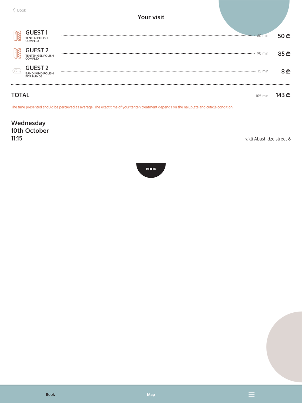 While using TENTEN application you can make an appointment for 2 guests at one time.