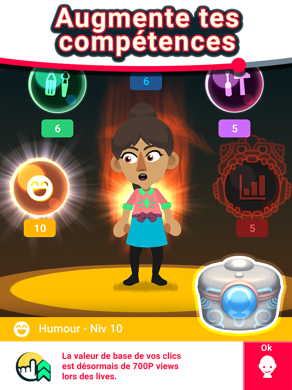 - Accumulez de l’expérience et augmentez vos compétences (humour, créativité, intelligence…).