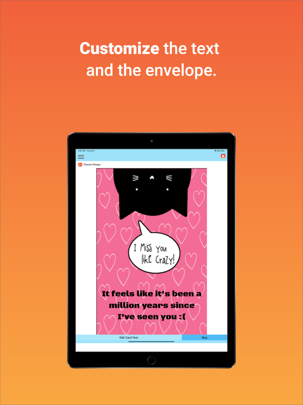 VidCard lets you attach a personal video to a greeting e-card of your choice then easily send it to one or more people by text or email. Choose from a large selection of unique e-cards from one of many categories, including Thank You, Happy Birthday, I Miss You, and I Love You. Sending a personal message of kindness, joy, or gratitude has never been easier.