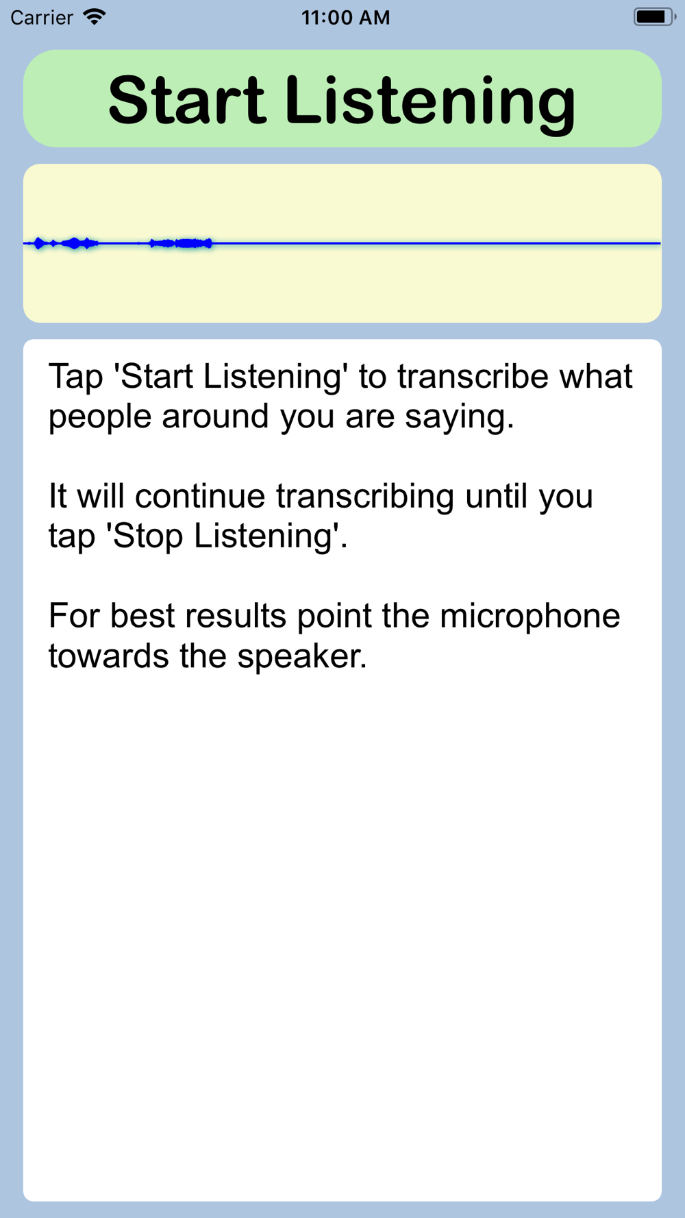 Live CC is very simple. Tap the "Start Listening" button to start the transcription process.