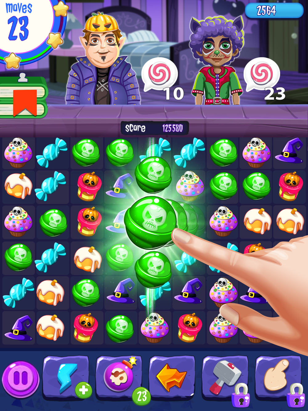 This Allhallowe’en puzzle game offers tons of missions. Each level has a different mission to complete and the difficulty will increase at each level. The main mission here is match 3 candies of the same taste and deliver them to your customers. Your customers are different and they will be wearing some amazing Halloween Costumes. Say happy Halloween to them and deliver their order without mistakes to win each level and go forward in this addictive Halloween witch game. Keep in mind that the gameplay will start out simple, but things will get more and more complicated and challenging.