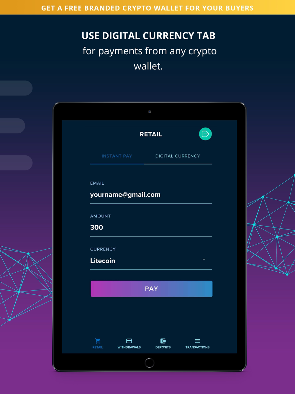 The first of its kind, hassle-free solution turning your smartphone into a fully-functional PoS terminal and making it easy to accept crypto payments. It allows people to buy things in your brick-and-mortar shop with bitcoin and other common cryptocurrencies. The point is, you still withdraw good old cash without bothering to visit third-party exchanges. Just link Elegro Retail app to your merchant account and let it do the rest.