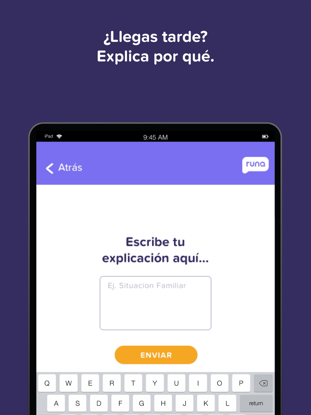 Bye biométricos. Hola Runa Asistencias. Dile adiós a tu viejo checador o tu libreta de registro y deja que tus empleados chequen sus asistencias desde Runa Asistencias desde una tablet o smartphone.