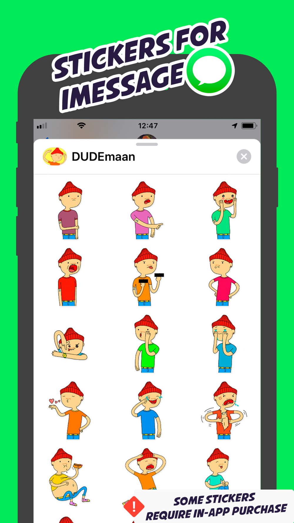 Download this application you can share stickers in all messengers, and also officially add this pack to iMessage, install the keyboard and use them in WhatsApp and Telegram!