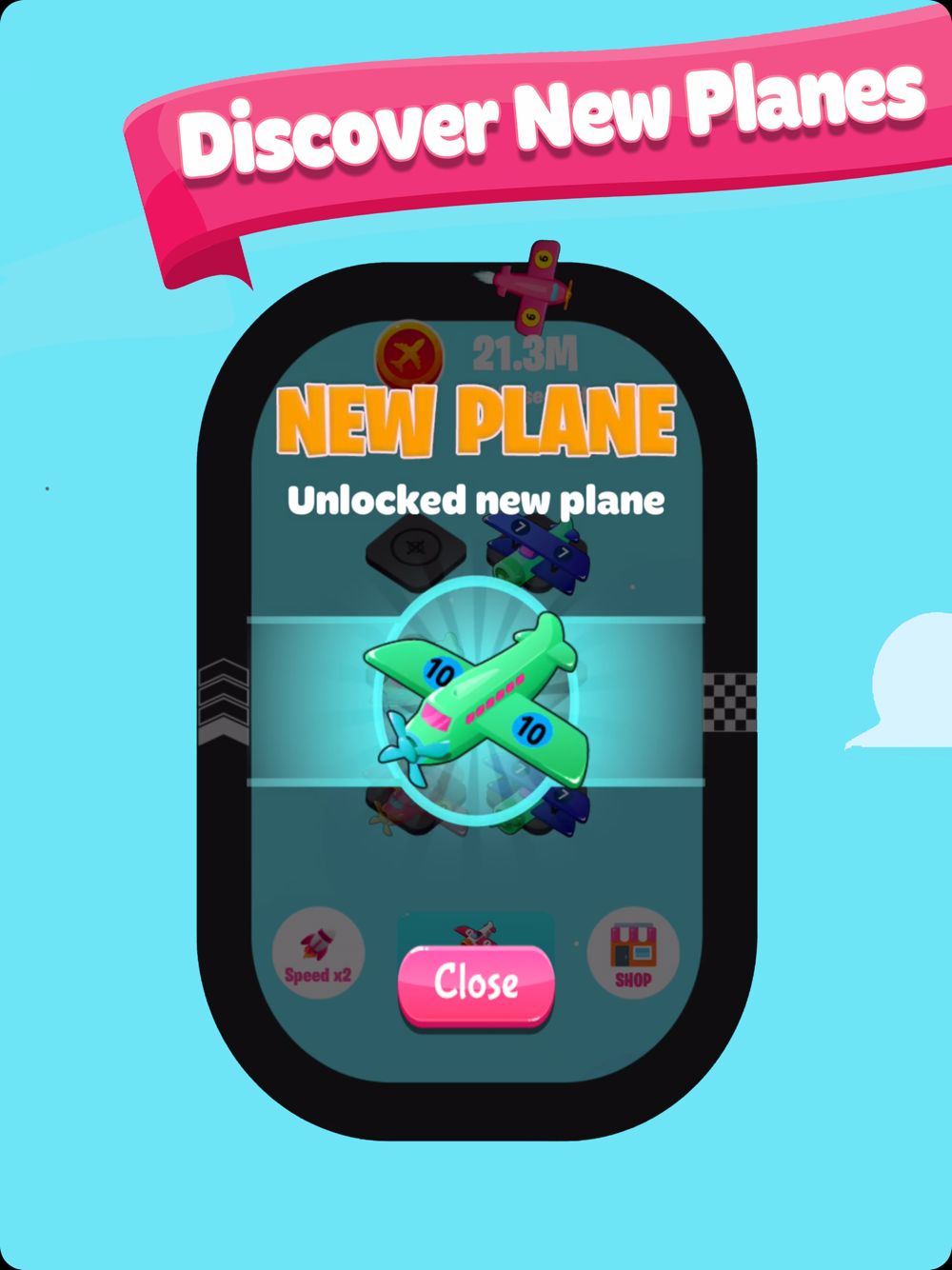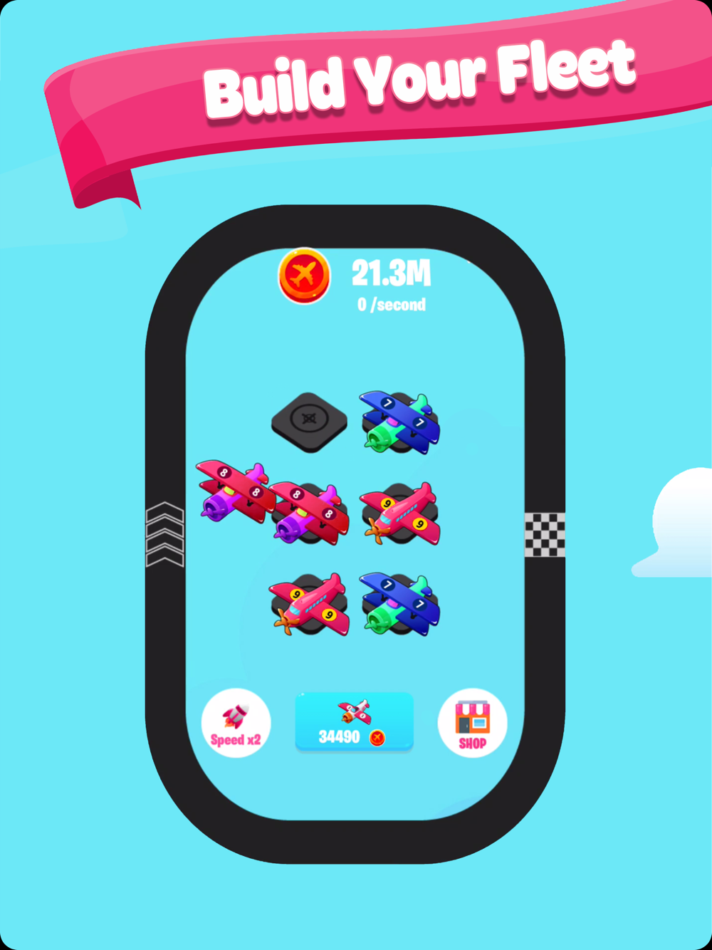 Buy, merge and manage your fleet of planes so that you can make money and upgrade them