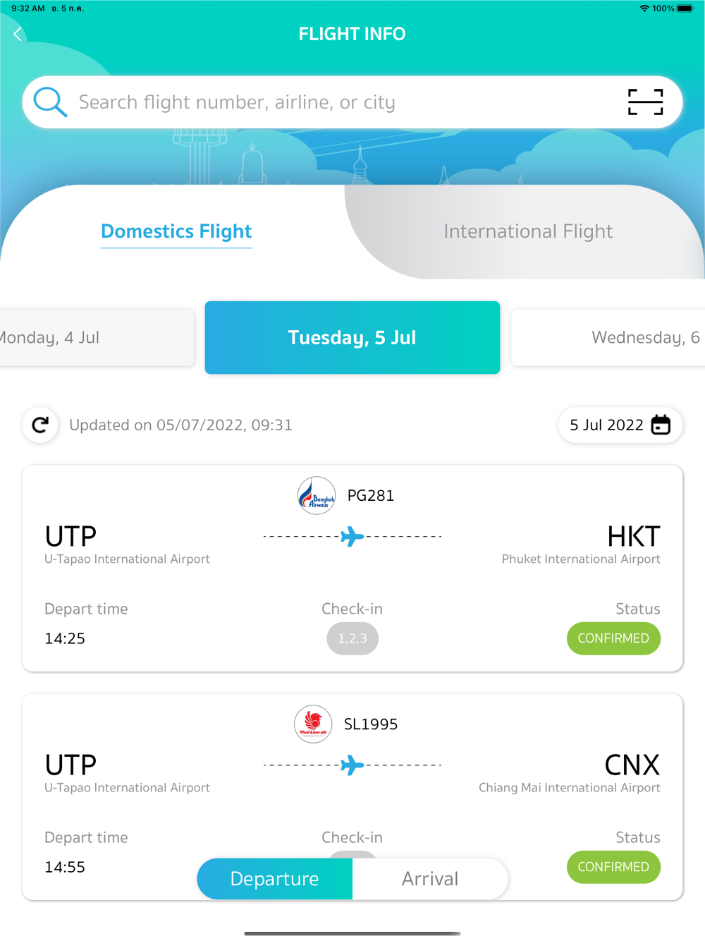 U-Tapao–Rayong–Pattaya International Airport’s Official App bring you a personalized travel experience with our new mobile application, called Thailand Smart Airport Application. Allow our airport team to give you updated information to help you with your journey with Key Features: