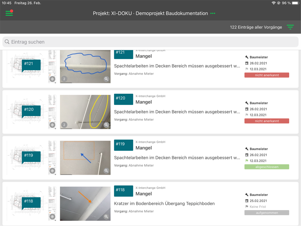 Bisher war die Dokumentation von Mängeln, Schäden, Restleistungen oder Zustandsfeststellungen auf der Baustelle sehr arbeits- und zeitintensiv. Die Digitalisierung der Mängelverwaltung bietet hier völlig neue Potenziale – wenn man sie nutzergerecht realisiert. Deshalb haben wir gemeinsam mit erfahrenen Bauleitern ein leistungsfähiges und 100% praxiserprobtes Dokumentations-Tool entwickelt: +DOKU von X-Interchange.