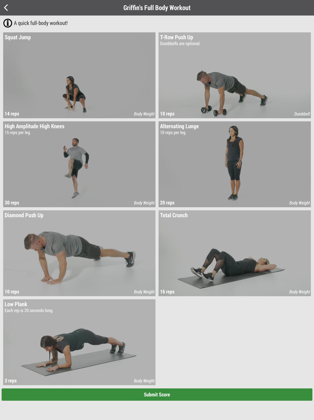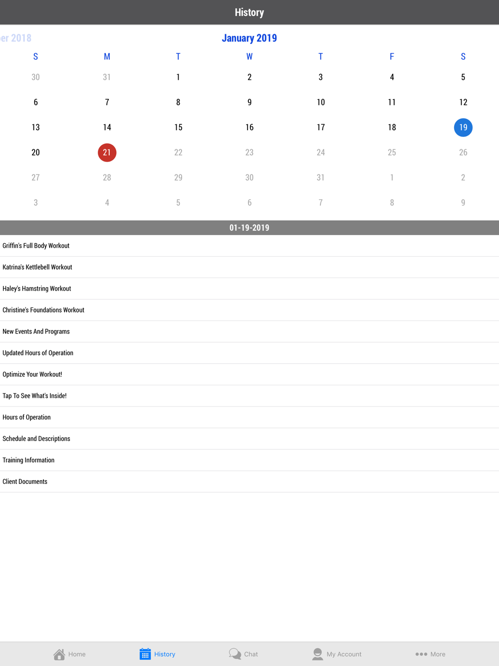 Workout History so you can constantly review what you have done in the past see how much you have improved.