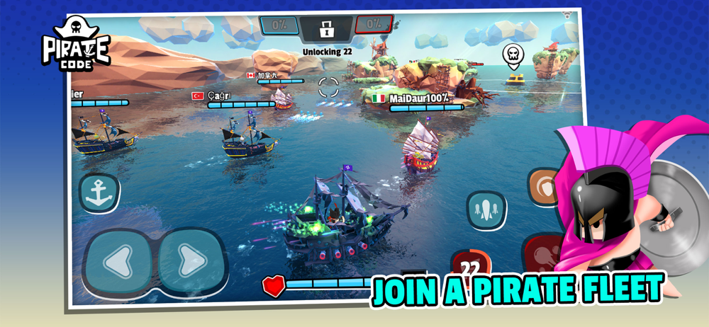 Choose your Pirate Code Captain, each with their own fearsome battle ability, from Vasco De Gama’s lethal fireball, Billy’s mighty energy wave, Hattori’s cunning invisibility shield, and Catalina’s fearsome frost arrow! Choosing the right captain and create a strategic advantage on the ocean wave!
