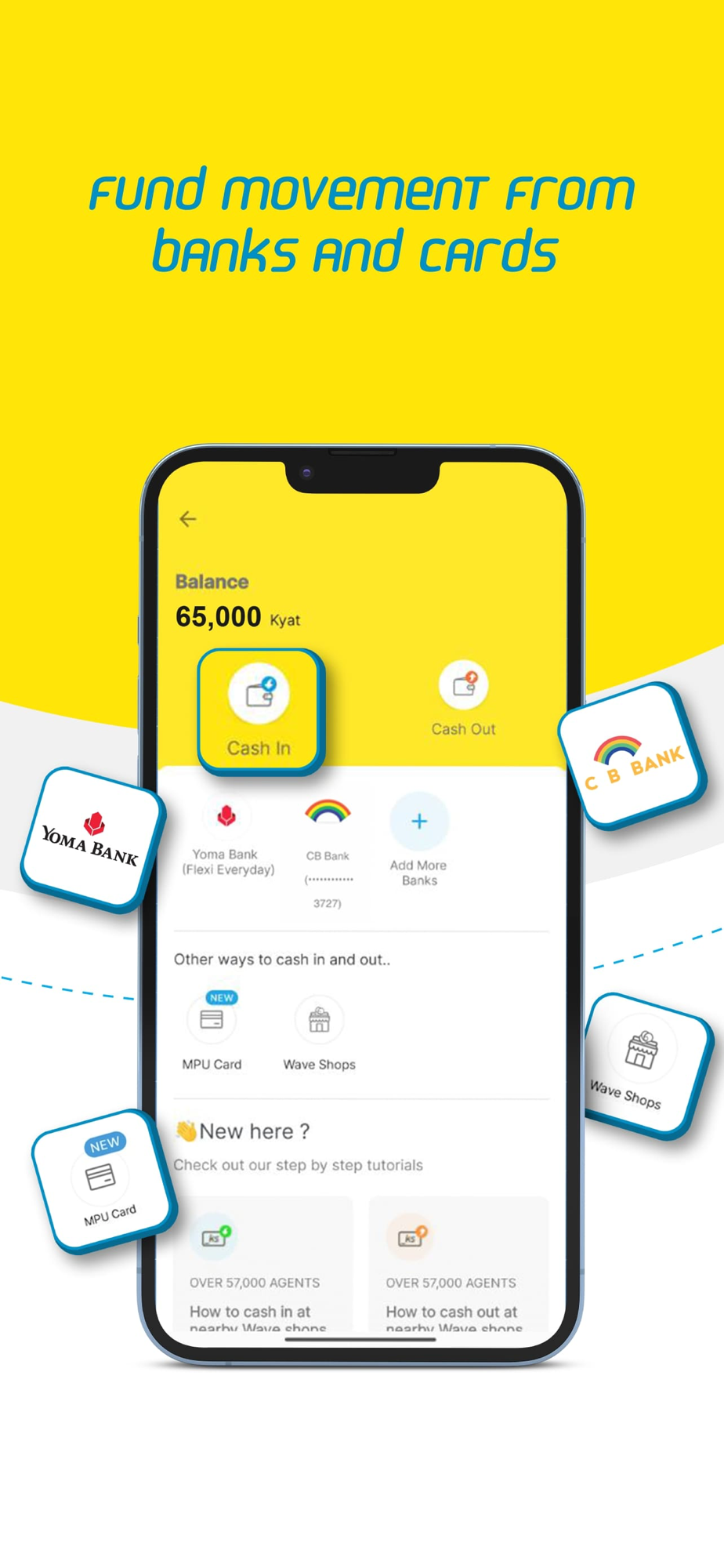 • Easily Cash-in or Cash-out at your near Wave agent shops; more than 60,000 agents across the country are at your service all the time
