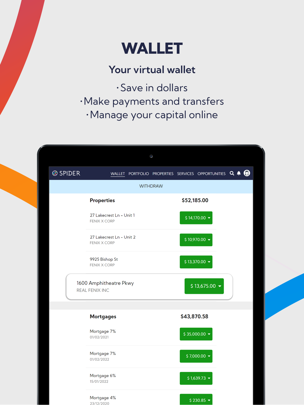 Our app allows you to invest, monitor your investments, manage your income, and view your