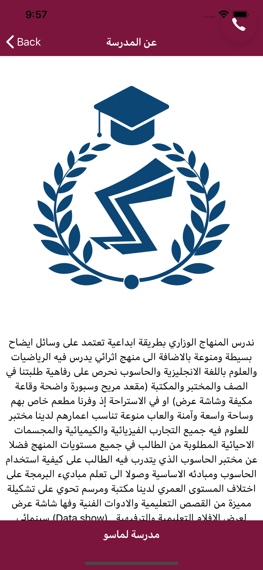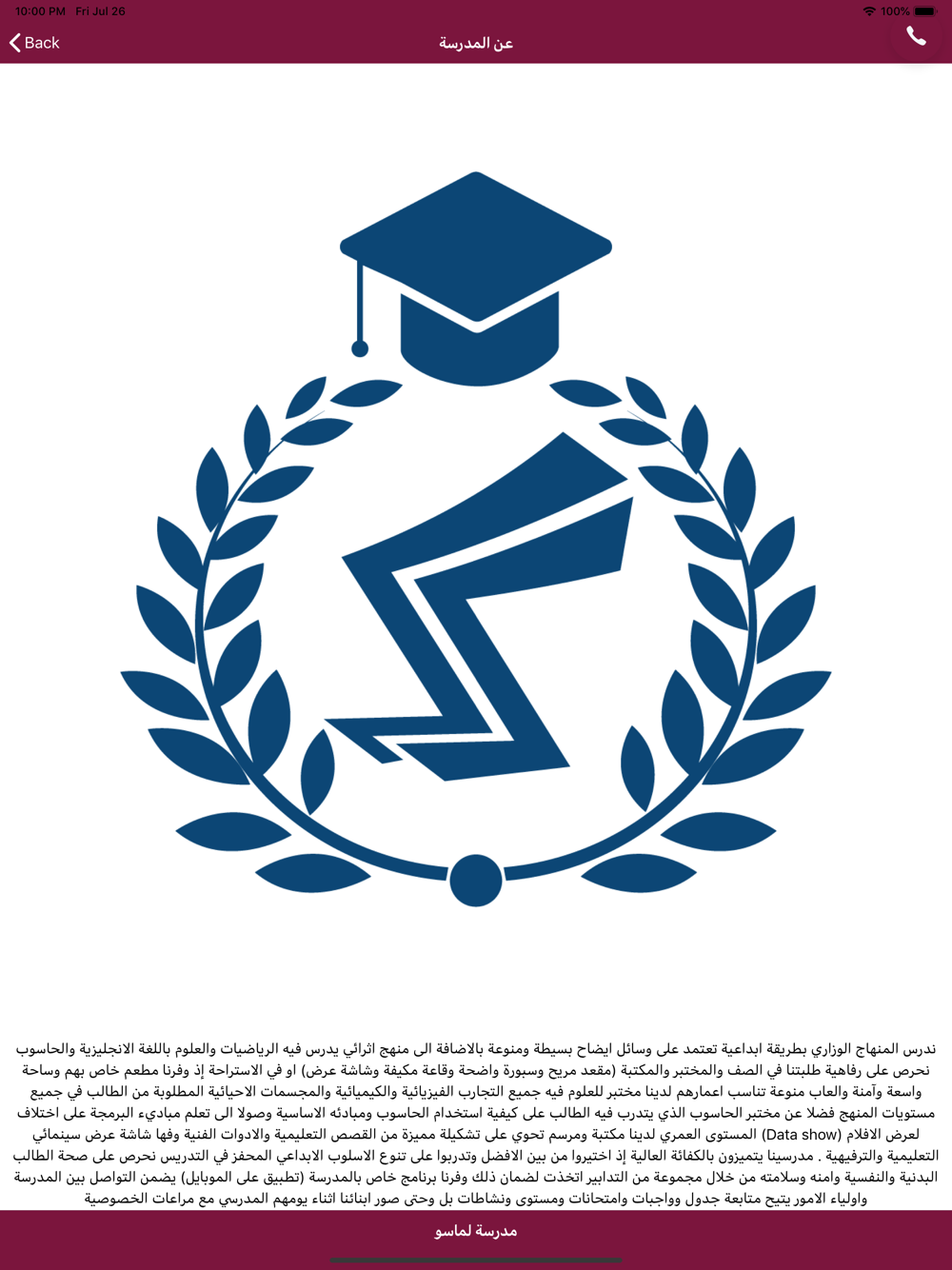 مدارس لاماسو الاهلية يحتوي التطبيق على كافة المميزات اللازمة للمدرسة من جدول ودرجات وكافة معلومات الطالب بالامكان ولي الامر الدخول باستخدام الايميل والباسورد المعطى من قبل المدرسة