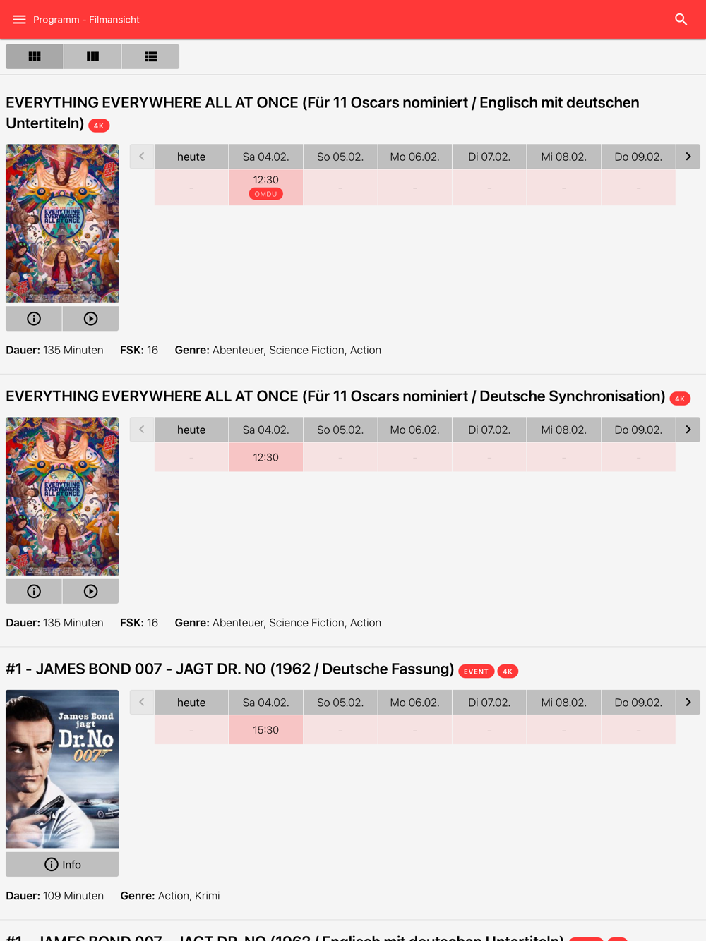 Hier kaufst Du in unter einer Minute Kinotickets für Deinen Lieblingsfilm. Schnell, sicher, einfach und ohne Anstehen an der Kinokasse. Einfach aus dem aktuellen Kinoprogramm Deinen Film buchen und Du erhältst die Tickets einfach & bequem als E-Ticket auf Dein Smartphone und an Deine E-Mail-Adresse.