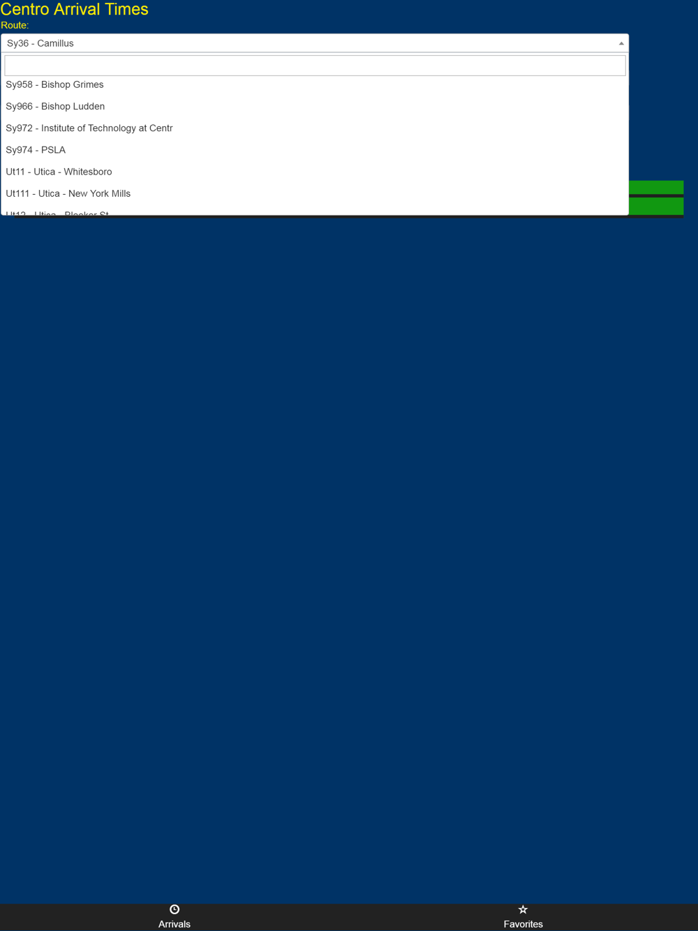 Lightweight bus tracker for the Central New York Regional Transportation Authority (Centro). Centro is the public transportation provider for Onondaga, Oswego, Cayuga, and Oneida counties, which includes the cities of Syracuse, Oswego, Fulton, Auburn, Rome and Utica.