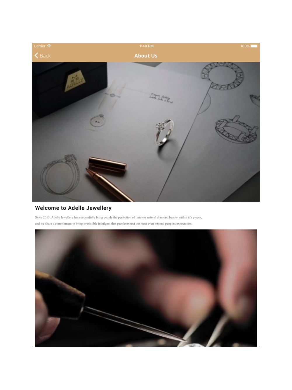 Aplikasi ini membantu customer dalam menentukan perhiasan berlian yang sesuai dengan keinginan dilengkapi dengan product knowledge dan unique selling point masing-masing koleksi. Customer juga dapat menemukan penawaran khusus dan produk dengan harga spesial melalui Adelle Jewellery Royalty Internal.