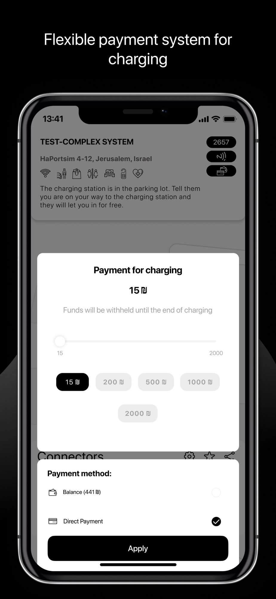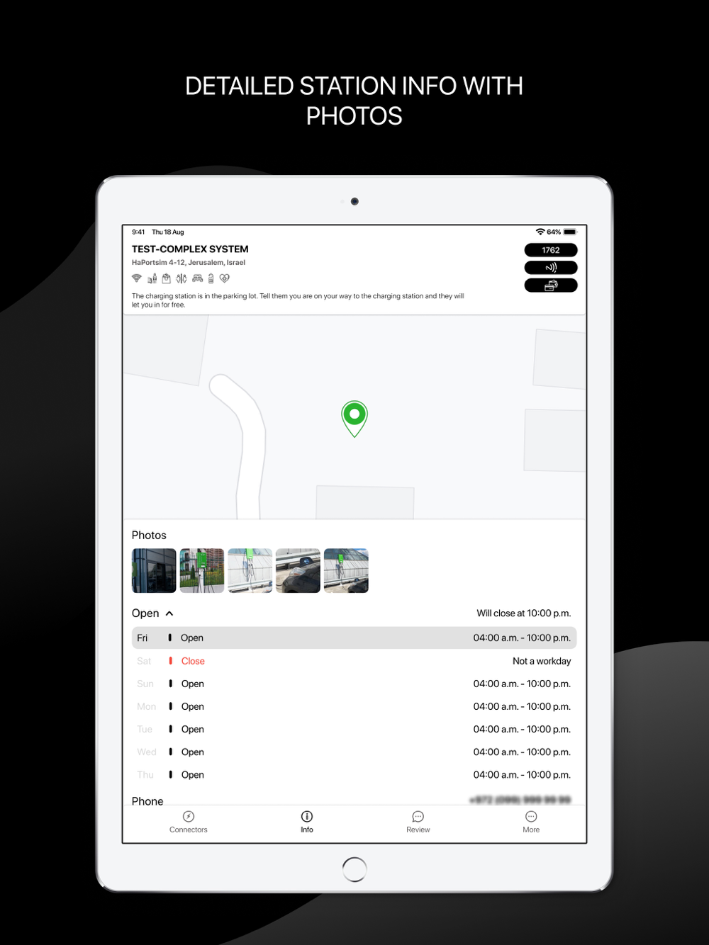 • Tap an EV charger location icon to view real-time EV charger information and status, such as: