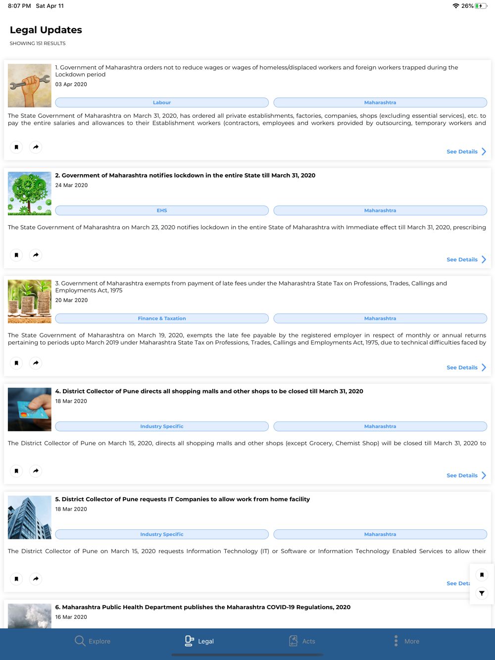 Teamlease Regtech Pvt. Ltd. is India's leading regulatory technology products company. This app by Teamlease Regtech is the most comprehensive digital repository of various acts, compliances and regulatory updates. Using this app, users can search for any act, compliance, related documents, updates, using basic as well as parametric search. Additionally, the user can mark bookmark and put them under bookmark, get notified about new updates on a daily basis, and also get access to Avantis newsletters.