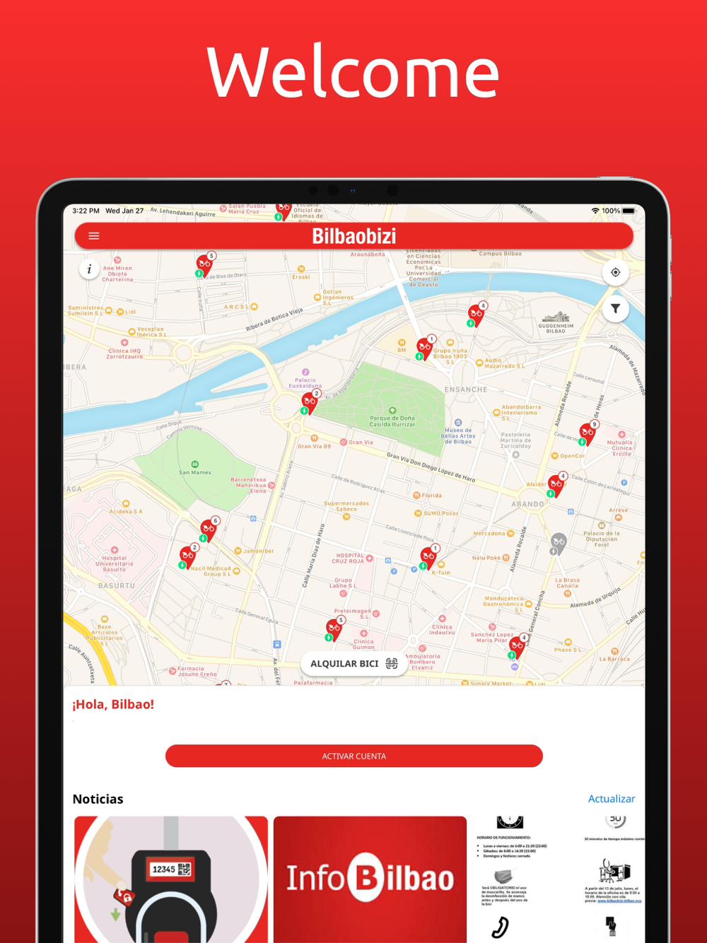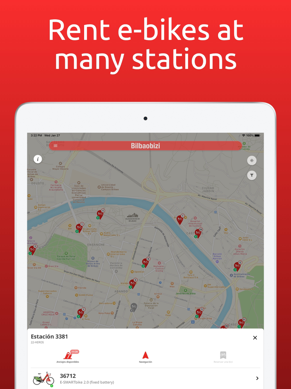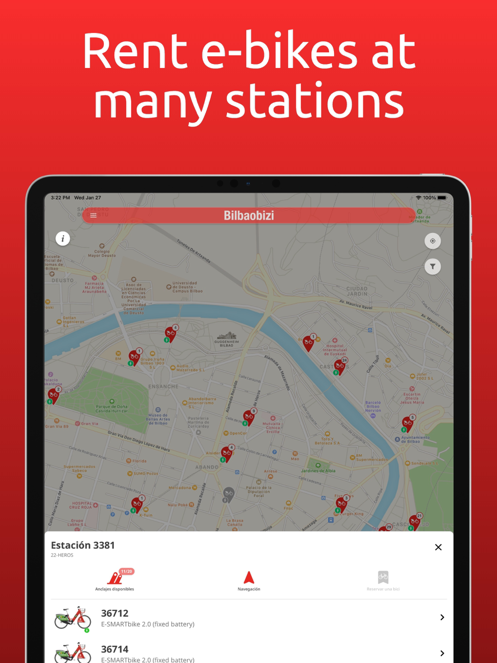 Start cycling! Find a bike, get on it and off you go - any time of the day, with your smart phone. All you need is the Bilbonbizi App, which will show you all available bikes and stations in real time.