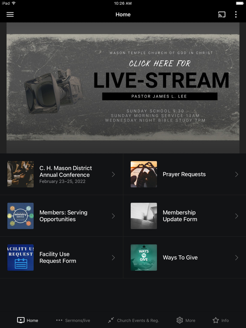 Welcome to the online home of Mason Temple Church of God In Christ. Mason Temple is a place where all people can encounter God, faith and community in an authentic, relevant and uplifting environment. We intentionally work to create an atmosphere where people can discover God's plan for their lives. This app provides access to life-changing sermons, insightful content and relevant information about our church.
