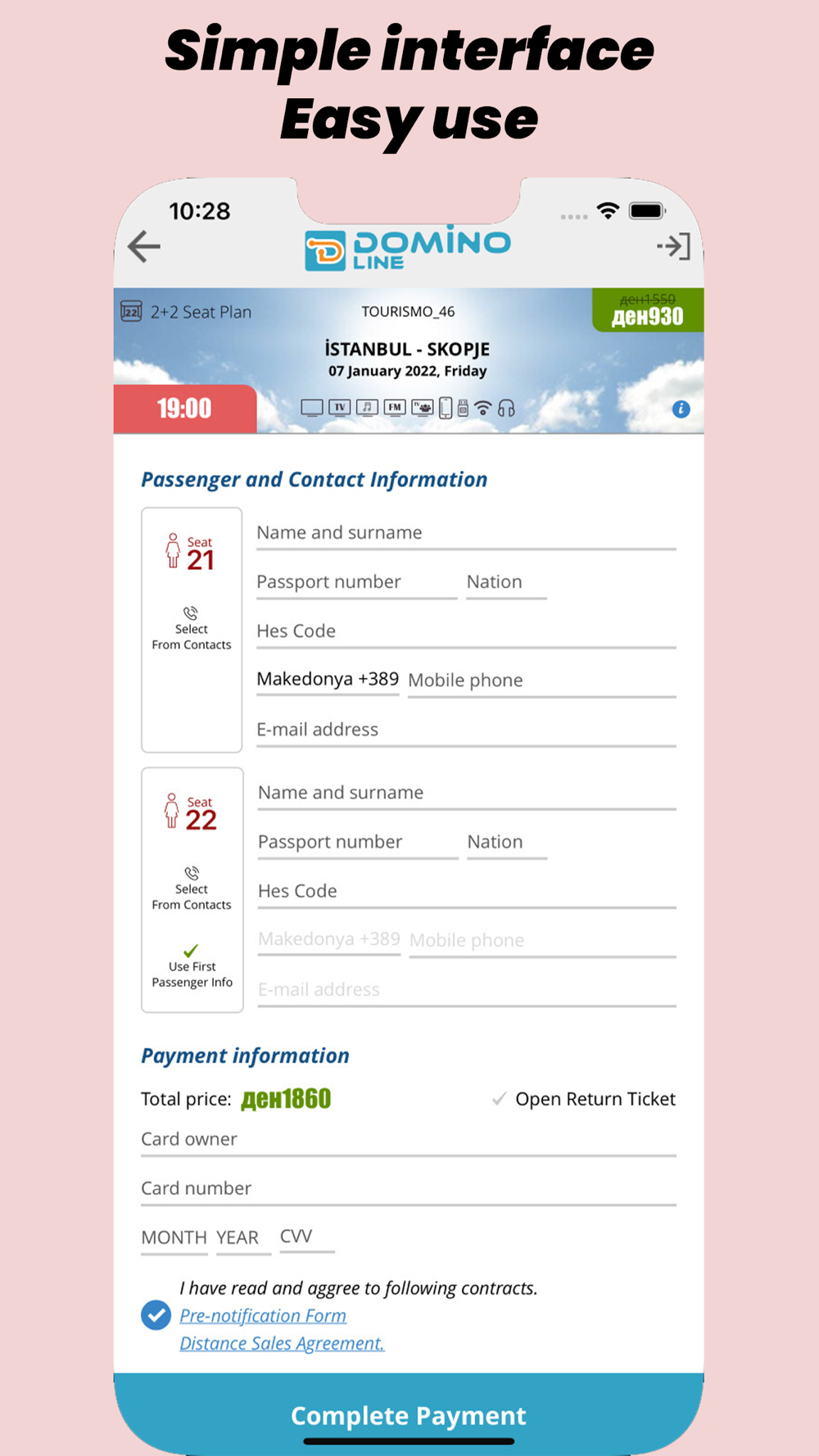 With the Dominoline mobile ticket sales application, you can buy bus tickets safely and practically. Through our application, you can easily purchase bus tickets, view our sales offices, sign up and update your membership information by making member login.