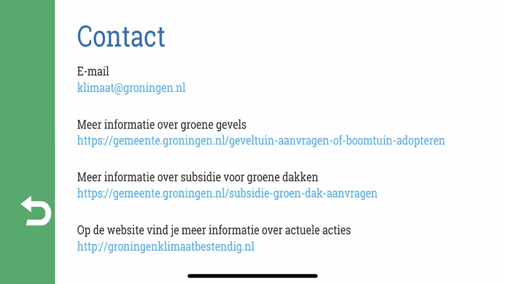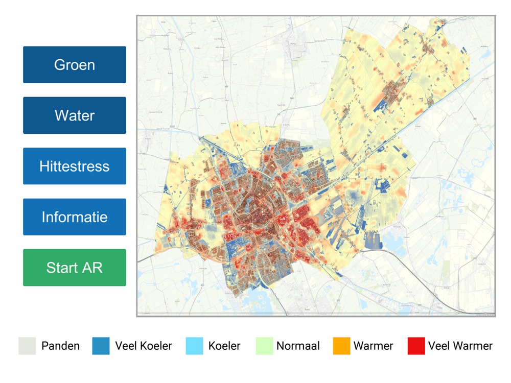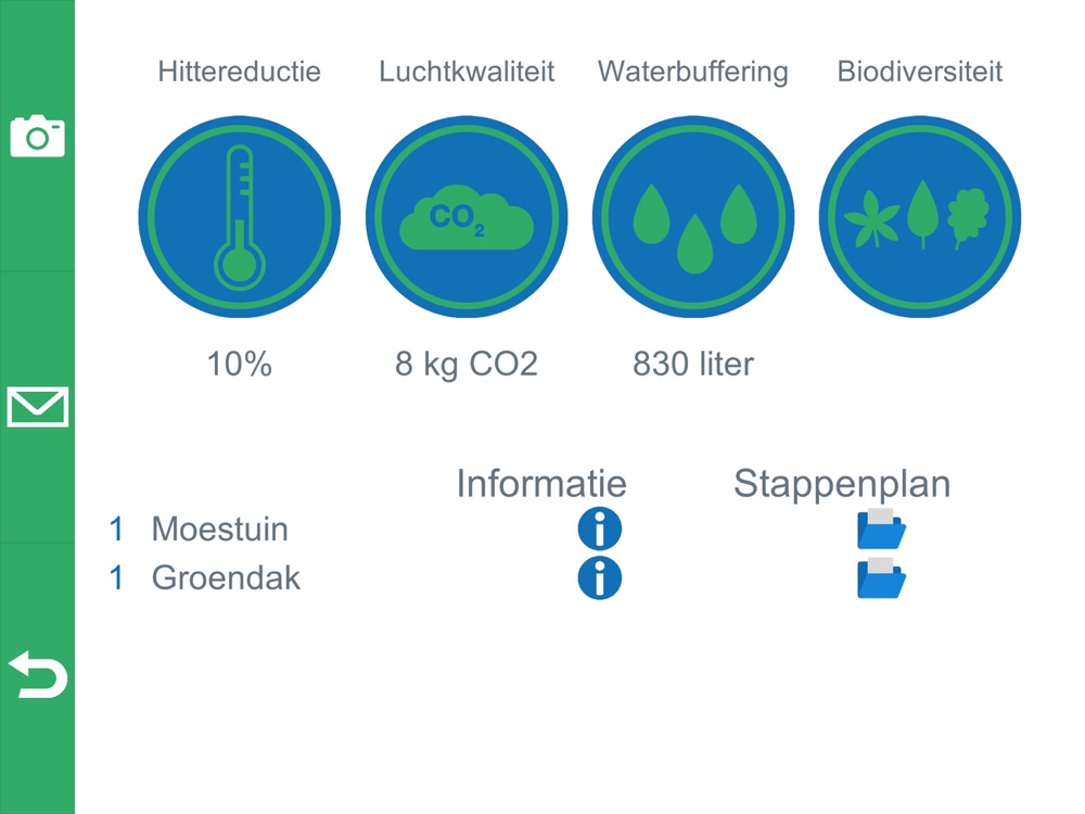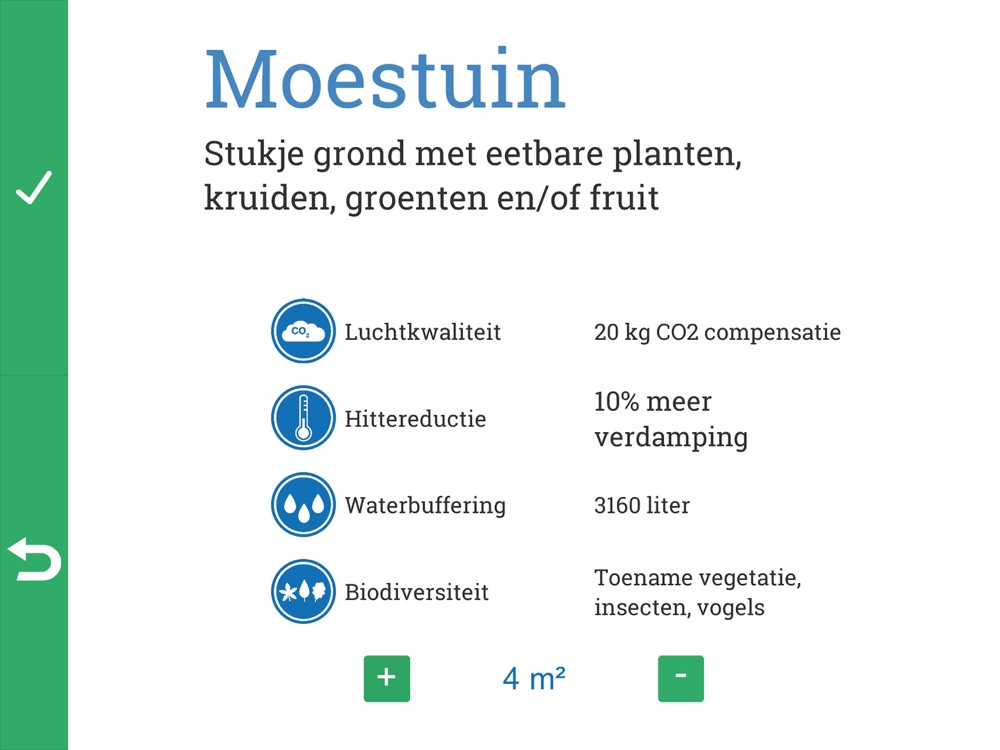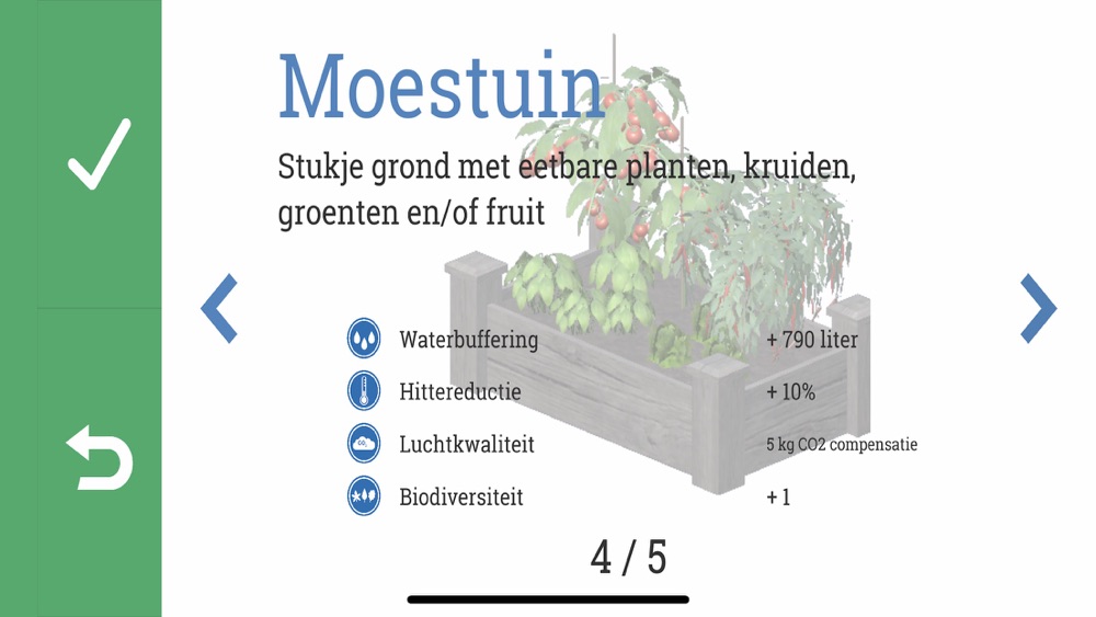 De applicatie laat op een heldere en beeldende manier zien hoe u kunt bijdragen aan een klimaatbestendige en veilige stad.