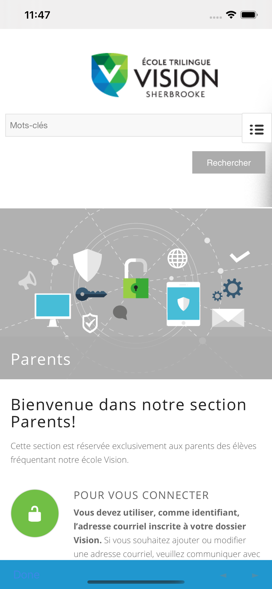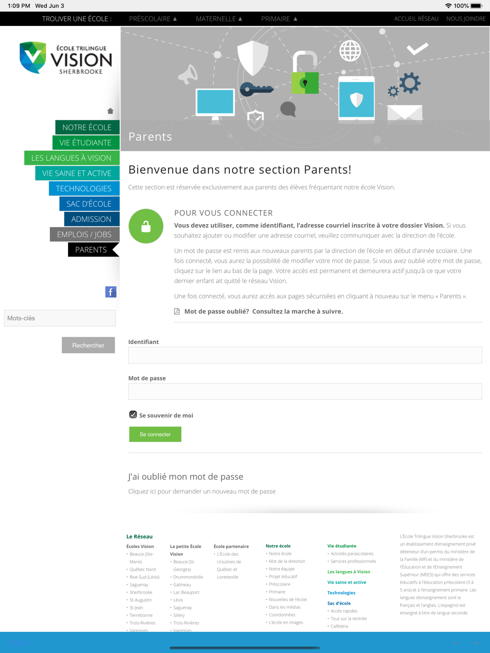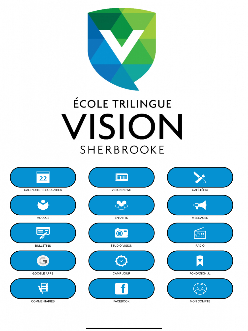 Nouvelle fonctionnalité: Vision News (nouvelles mensuelles de votre école).Réaménagement des boutons pour un fonctionnement plus logique.Renommer l'option Menu pour Cafétéria afin de mieux représenter la fonctionnalité.