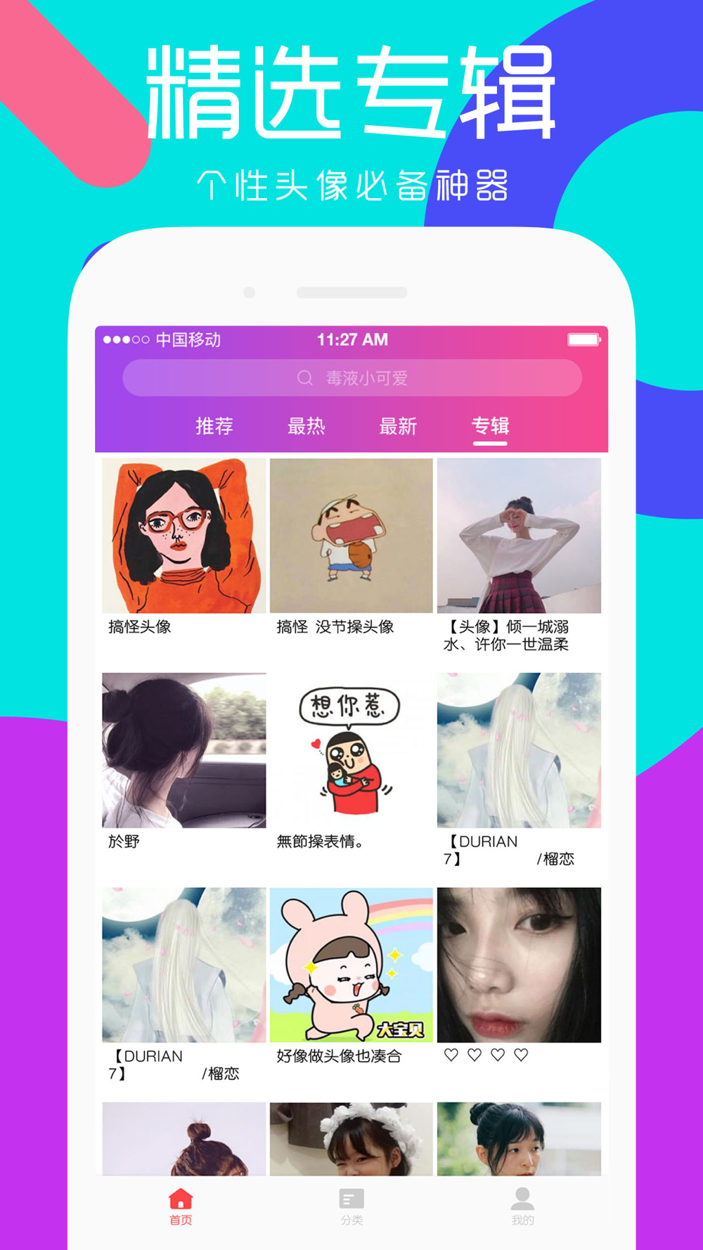 3、提供多种分类,类别清晰明确,快速找到自己的爱好。让你的头像与众不同,个性十足。