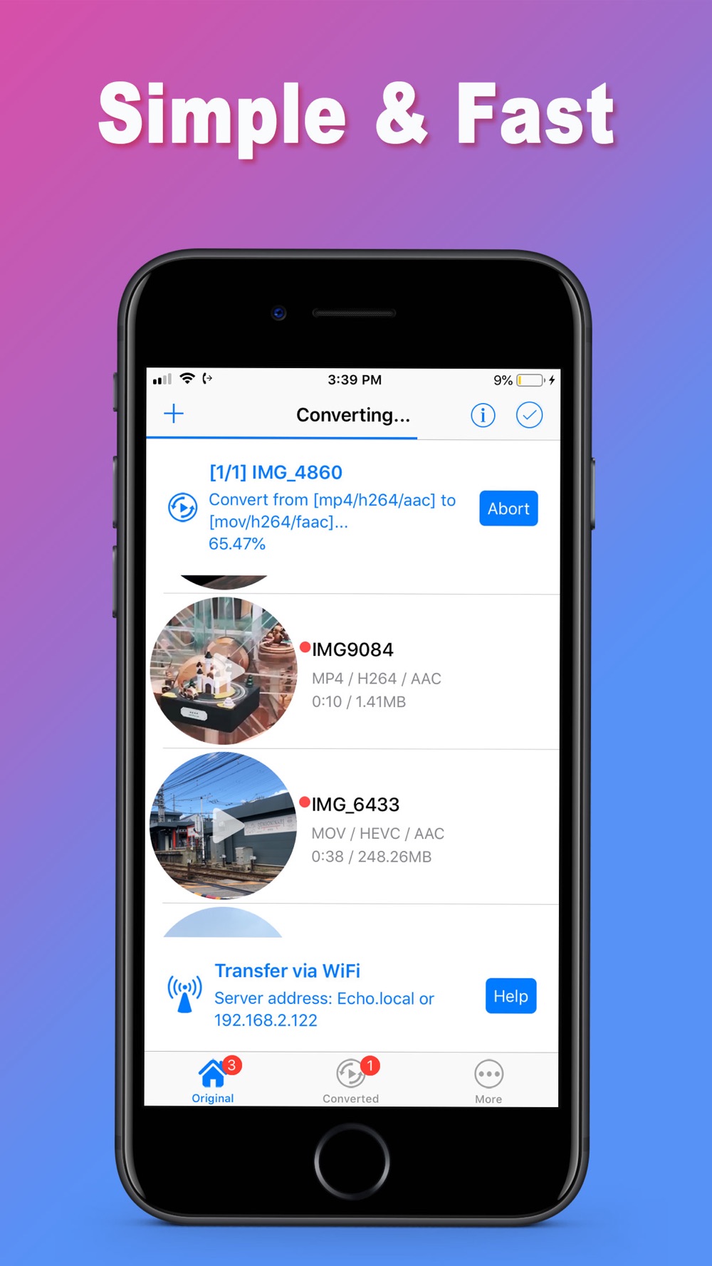 Fastest Video Converter and Compressor in the market that supports almost all video formats: MP4, MKV, AVI, 3GP, MOV, MTS, MPEG, MPG, WMV, M4V, VOB, FLV etc. This converter & compressor supports converting, compressing and changing resolution, audio bitrate of a video file, thus providing high quality video in optimized size. It can also convert video files into Audio formats like MP3, AAC, AC3, OGG, M4A, WAV etc formats.